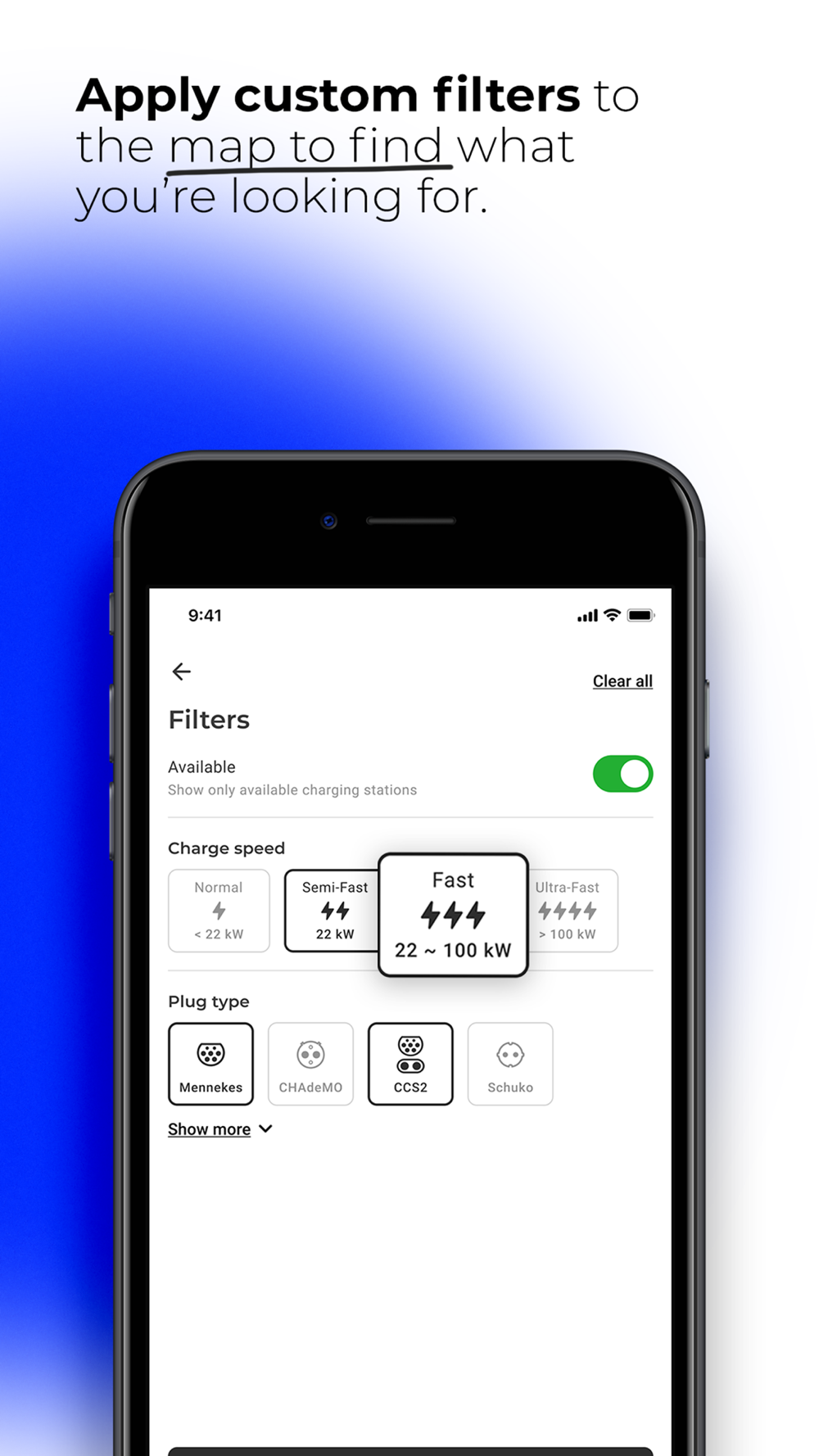 - Filter charging stations by criteria like connector type