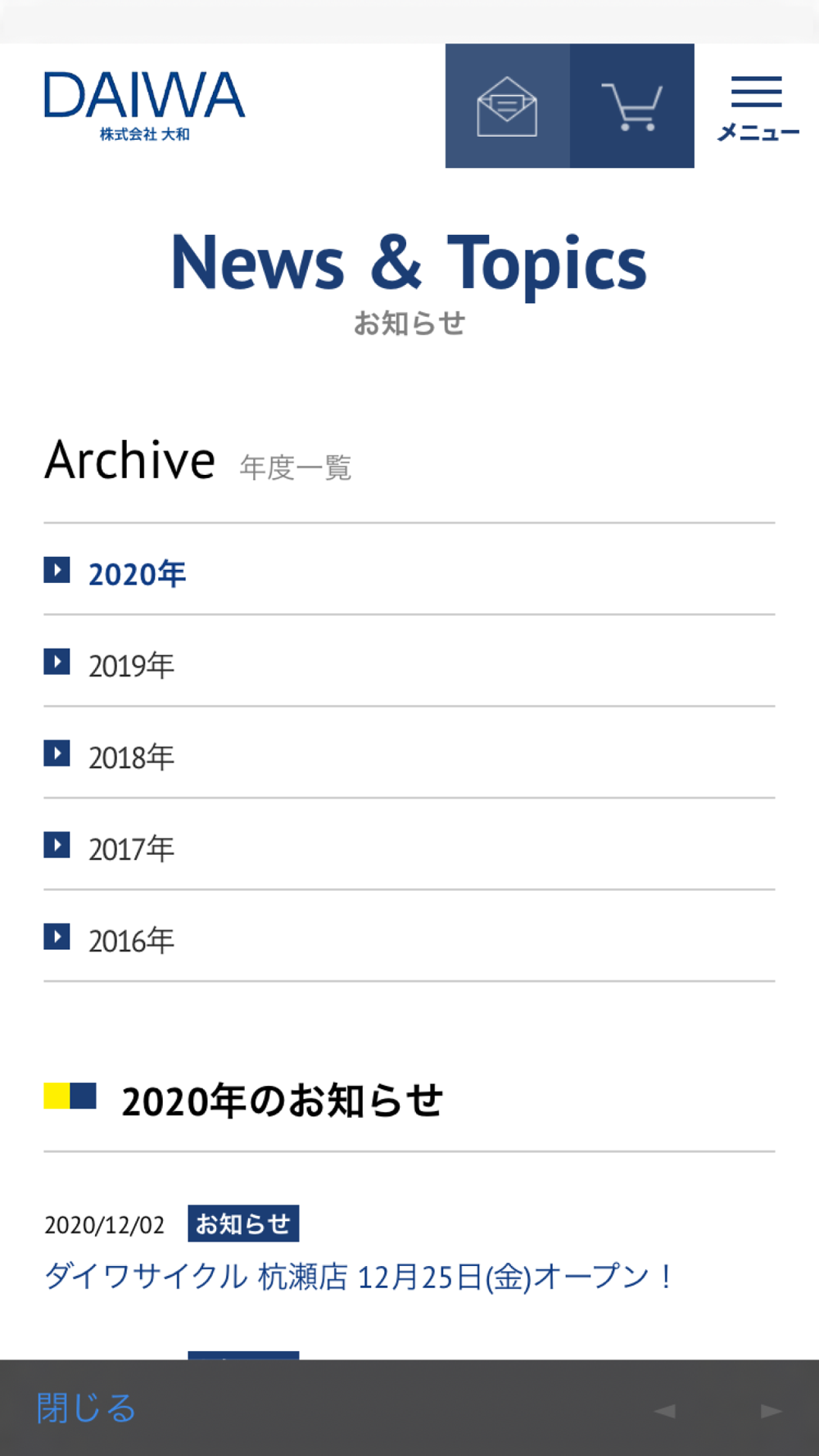 ダイワサイクルでのお買い物がもっとお得に、修理依頼がもっと便利になるアプリ「DAIWA PASSPORT」です。
