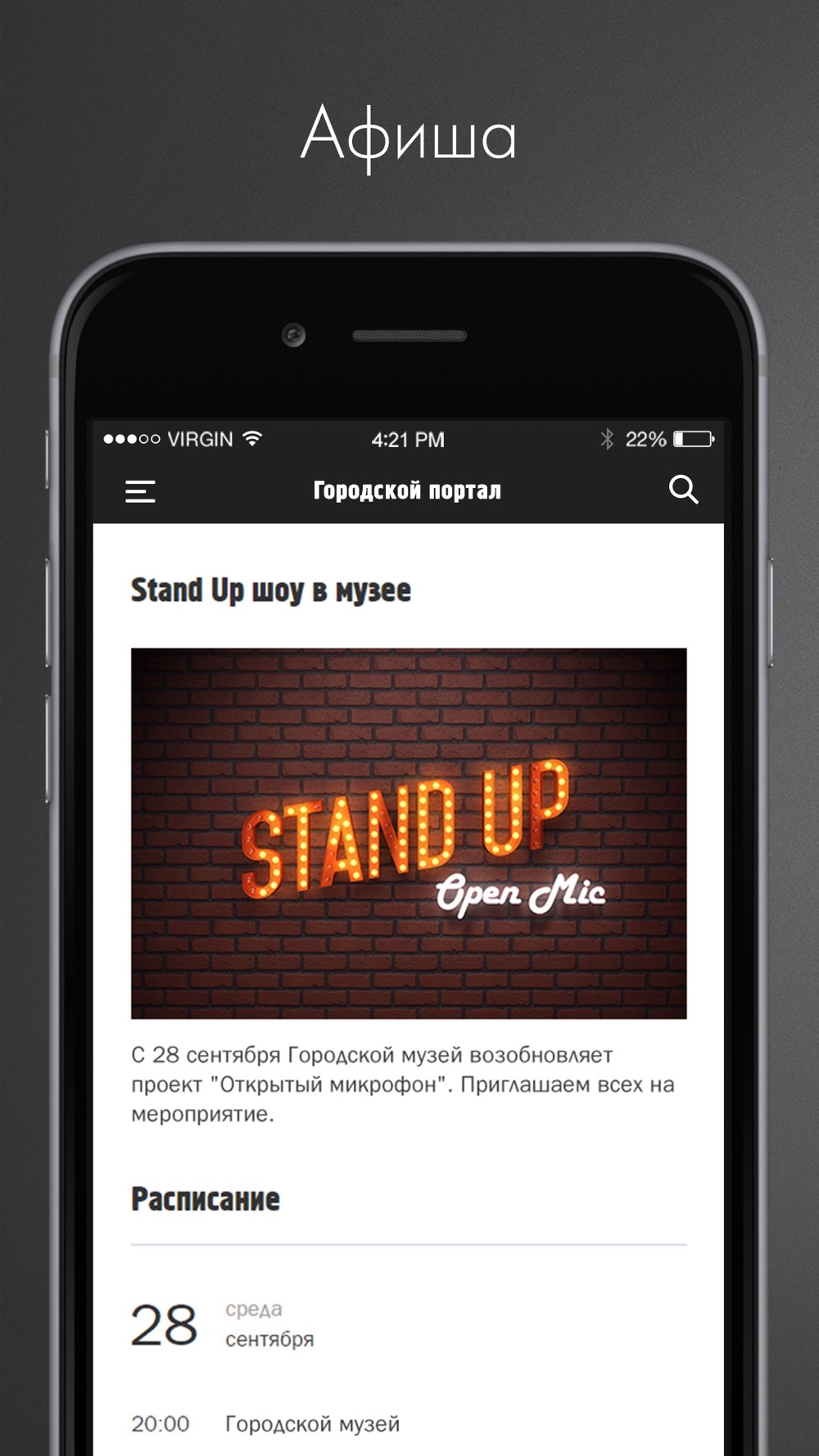 — Находите как провести свободное время: у нас есть расписания фильмов в кинотеатрах и выставок в музеях, время начала концертов и спектаклей, а также интересные вечеринки и детские мастер-классы в различных кафе и ресторанах нашего города