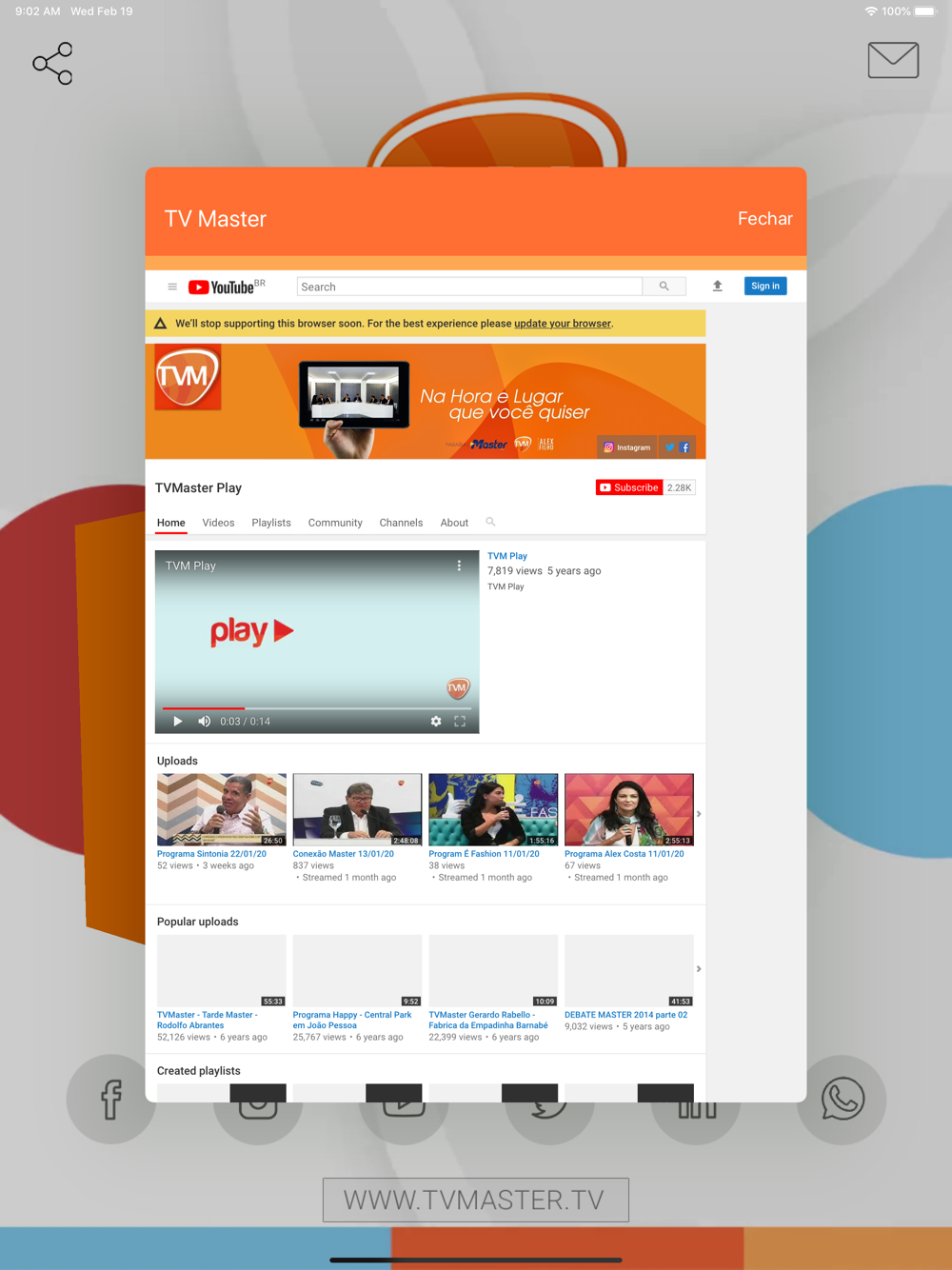 TV Master de João Pessoa, Paraíba agora, disponível para todos os usuários de iPhone e iPad. Veja as principais notícias de João Pessoa, Paraíba, Brasil e do mundo através do app. Interaja com as nossas redes sociais. Entre em contato conosco através da tela de formulário de contato ou pelo WhatsApp integrados ao aplicativo.