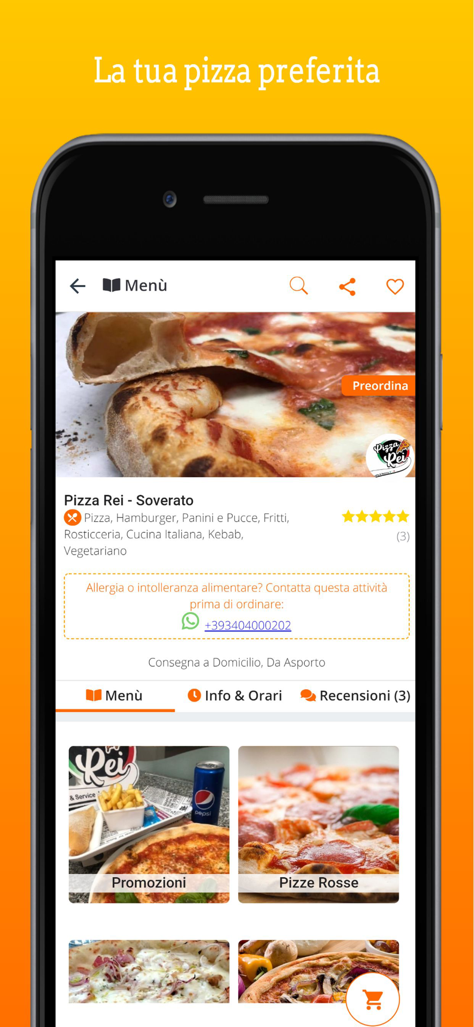 • Tanti servizi a portata di mano - Ordina cibo dovunque tu sia, in qualsiasi momento! Le attività che fanno parte della nostra rete offrono servizi quali Consegna a Domicilio, Asporto ma anche Prenotazione Tavoli, in questo modo puoi scegliere quello che più ti piace e mangiare in qualsiasi momento, oppure prenotare una cena romantica!