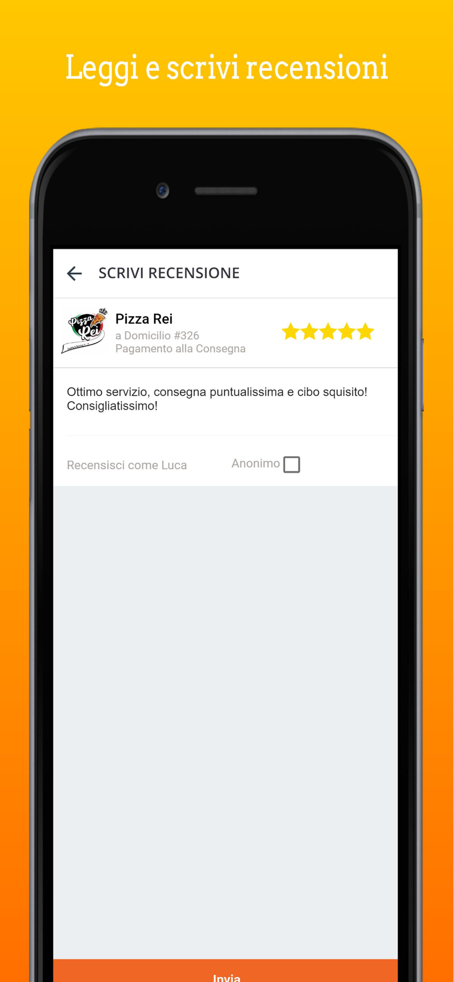 • Recensioni e Valutazioni del Cliente - Indeciso su cosa scegliere? I nostri clienti, dopo l'ordine presso una qualsiasi Attività, possono lasciare un Feedback, ovvero una recensione accompagnata da una valutazione in stelle, da 1 a 5. In questo modo potrai farti un'idea più chiara prima di ordinare qualcosa!