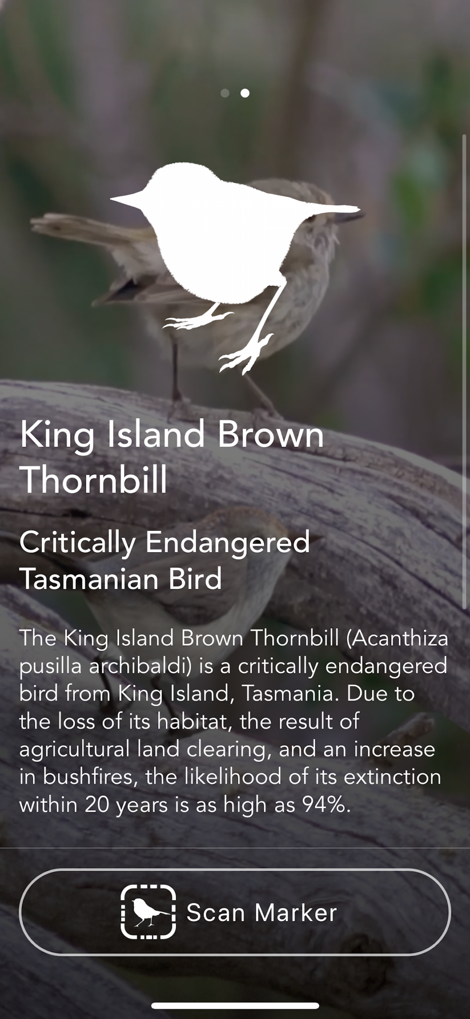 An animated rendering of a King Island Brown Thornbill (Acanthiza pusilla archibaldi), a critically endangered bird from King Island, Tasmania, to interact with a sculpture of a diagram patented by Amazon illustrating a cage for a human worker.
