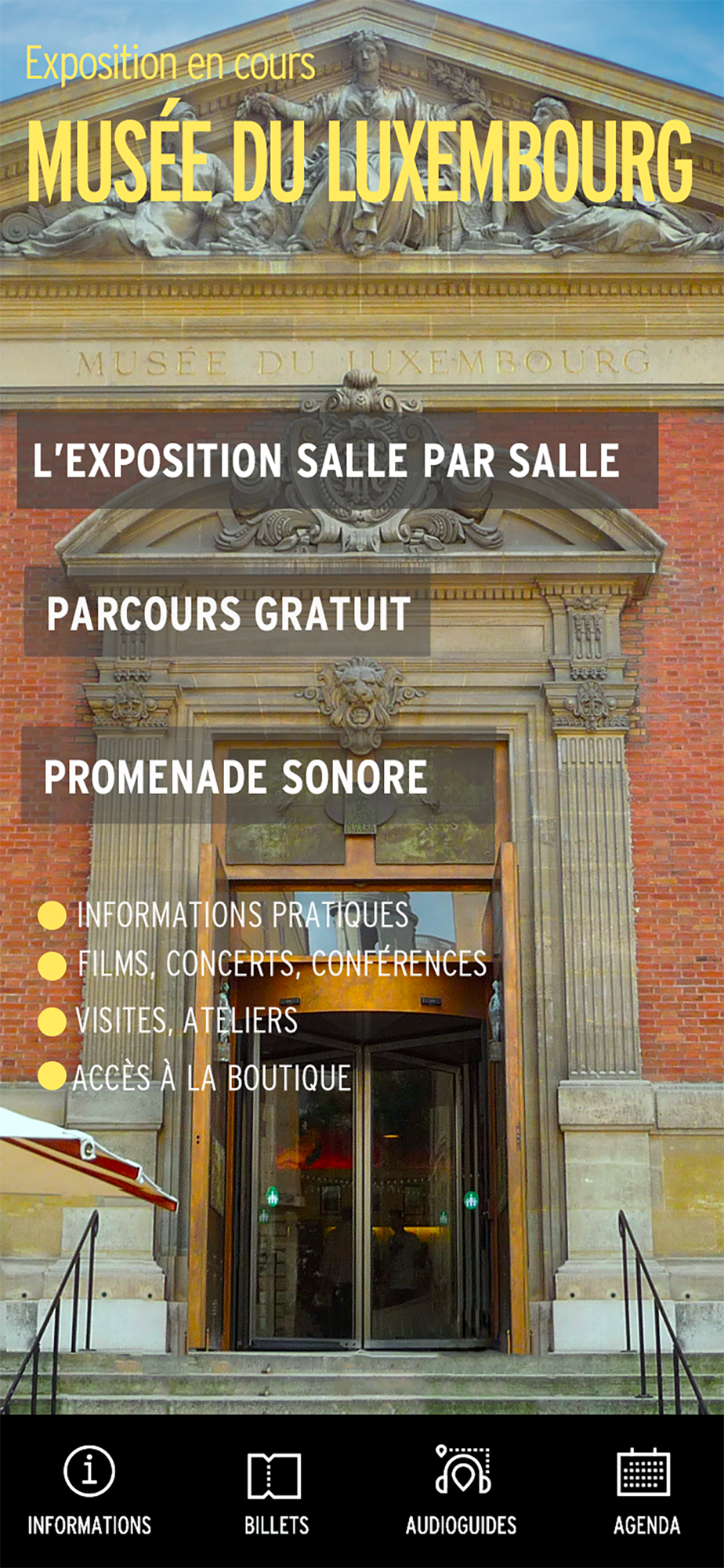 You'll be notified about coming exhibition organised by the Musée du Luxembourg directly in the application, as well as fairs and events organised.