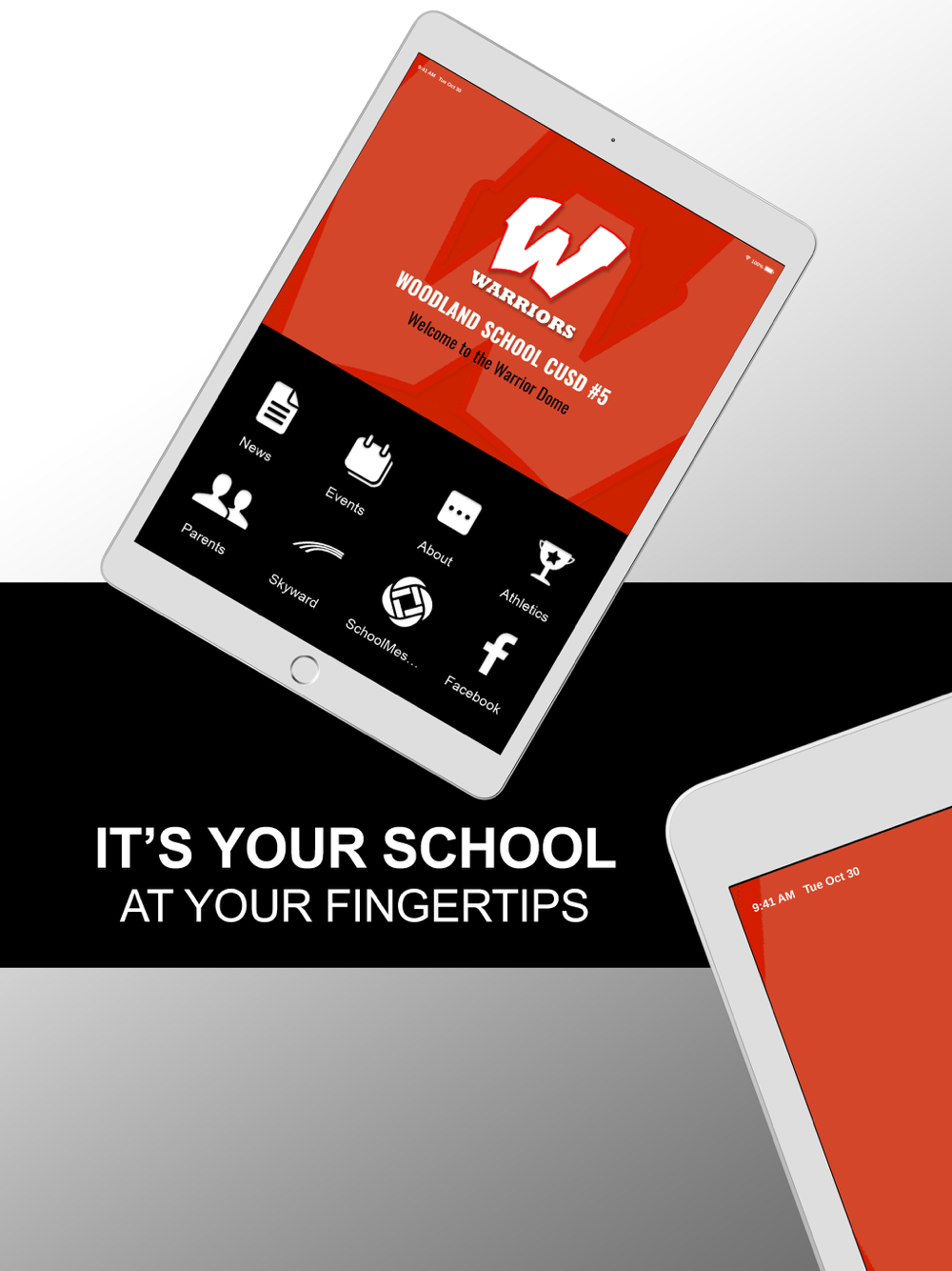 With the Woodland Comm USD 5 mobile app, your school district comes alive with the touch of a button. Easily navigate through current news and events or check out the latest updates with social media. Quickly retrieve contact information, sporting scores, lunch menus, and more! It’s your school district available at your fingertips.