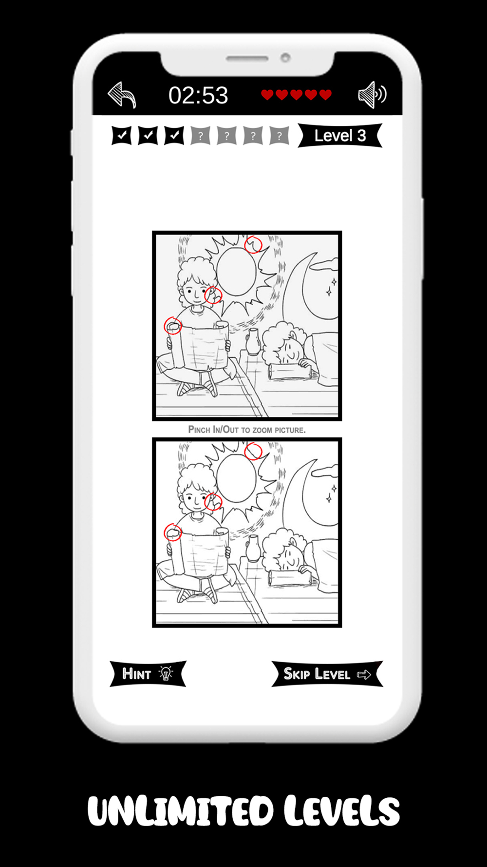 Find the difference games aren't like this; it's all hand-drawn images and all will be hand-drawn, not computer-generated. The game consists of only black and white images, so no colouring pictures or colour puzzles will be included.
