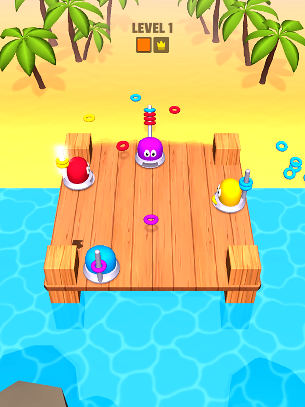 Aim and throw five hoops on the rods of your hoop stars opponents to defeat them!