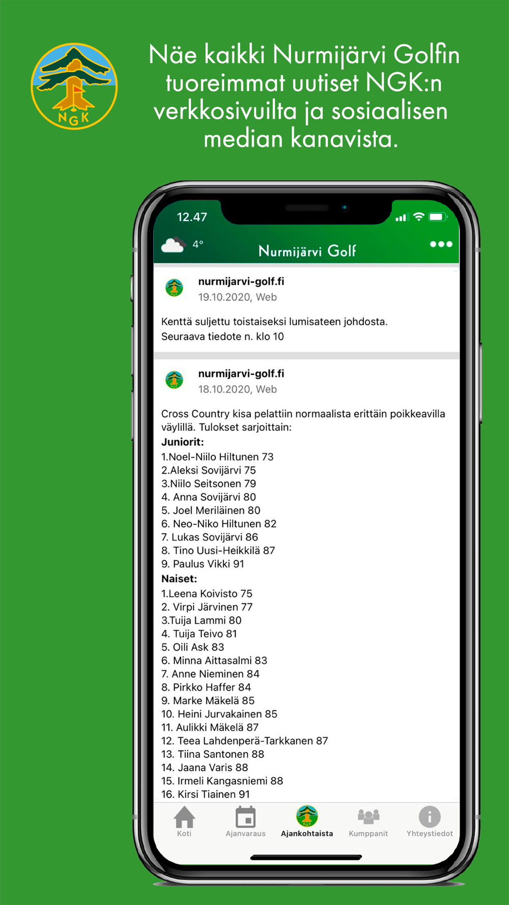 Nurmijärvi Golfin mobiilisovellus puhelimelle ja tabletille.