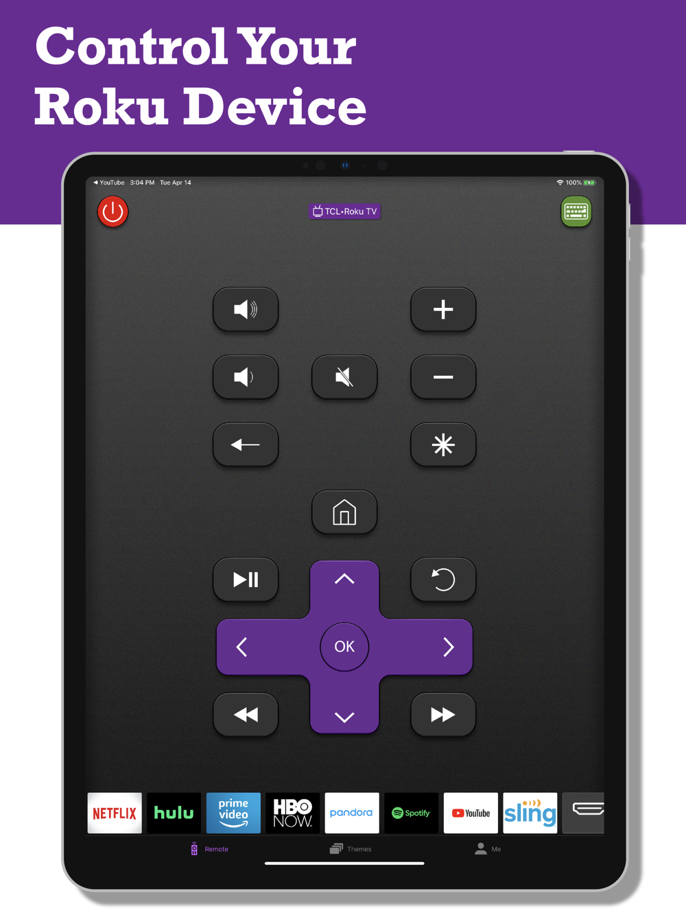 - Fully functional remote control for your Roku TV