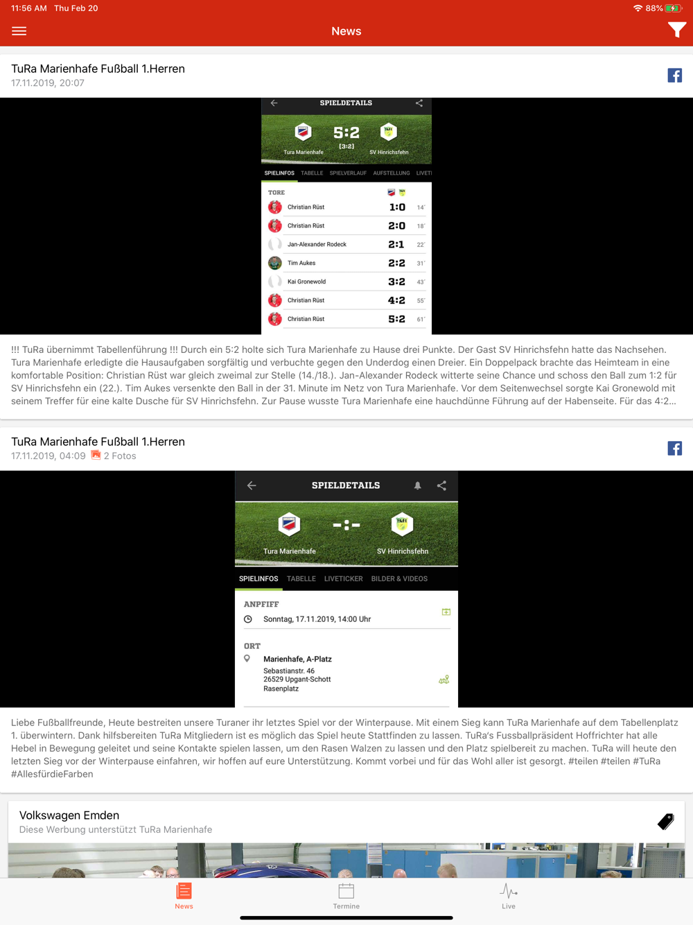 Durch die Einbindung sozialer Netzwerke kannst du das Geschehen im Verein brandaktuell mitverfolgen.