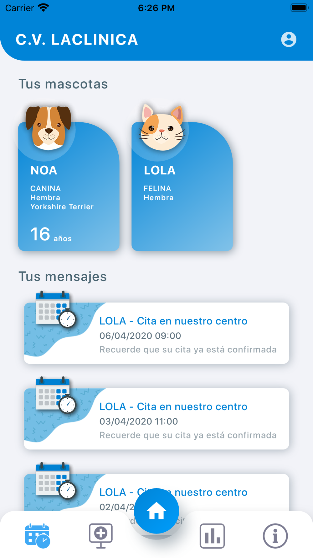 Con la App de tu clínica veterinaria recibirás los recordatorios más importantes para tu mascota directamente en tu teléfono móvil. Además puedes hacer videoconsulta con tu centro veterinario y cuidar la salud de tu mascota sin moverte de casa.