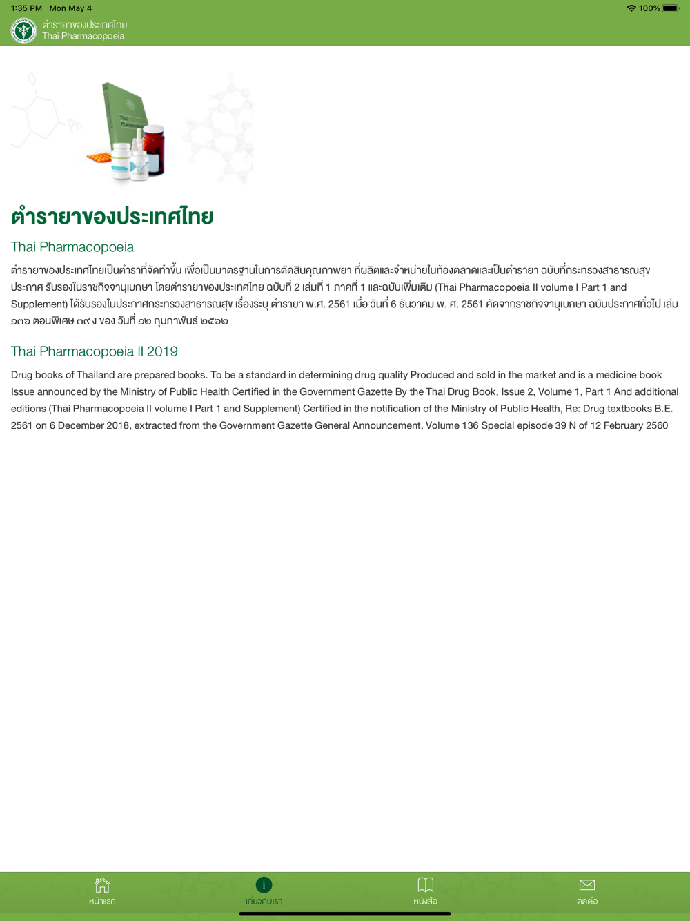 และฉบับเพิ่มเติม (Thai Pharmacopoeia II volume I Part 1 and Supplement)