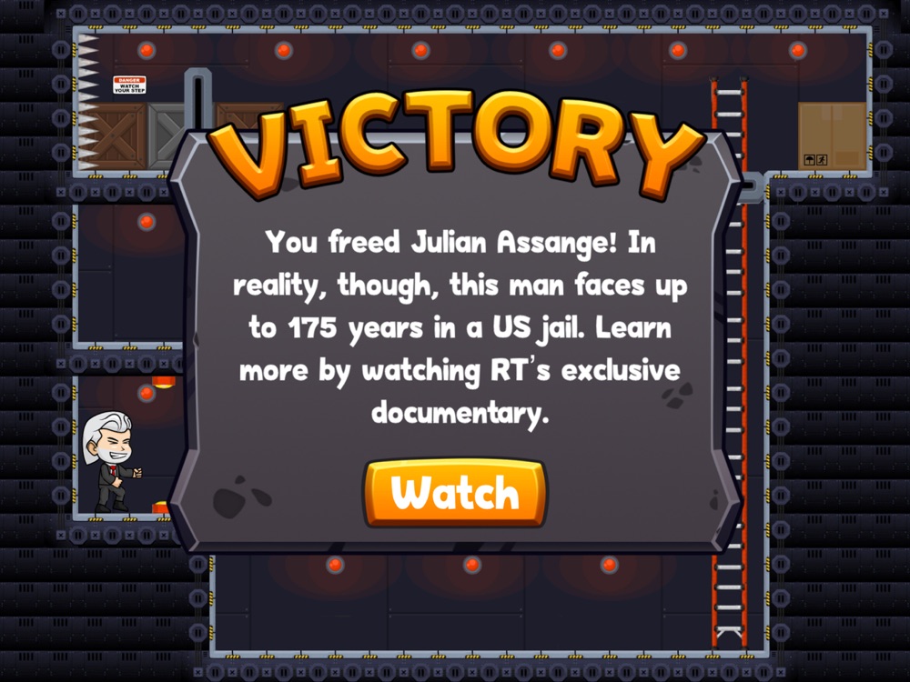 It’s free to play Free Assange. Finish the game, and you get a chance to watch an exclusive RTD documentary called The Assange Story.