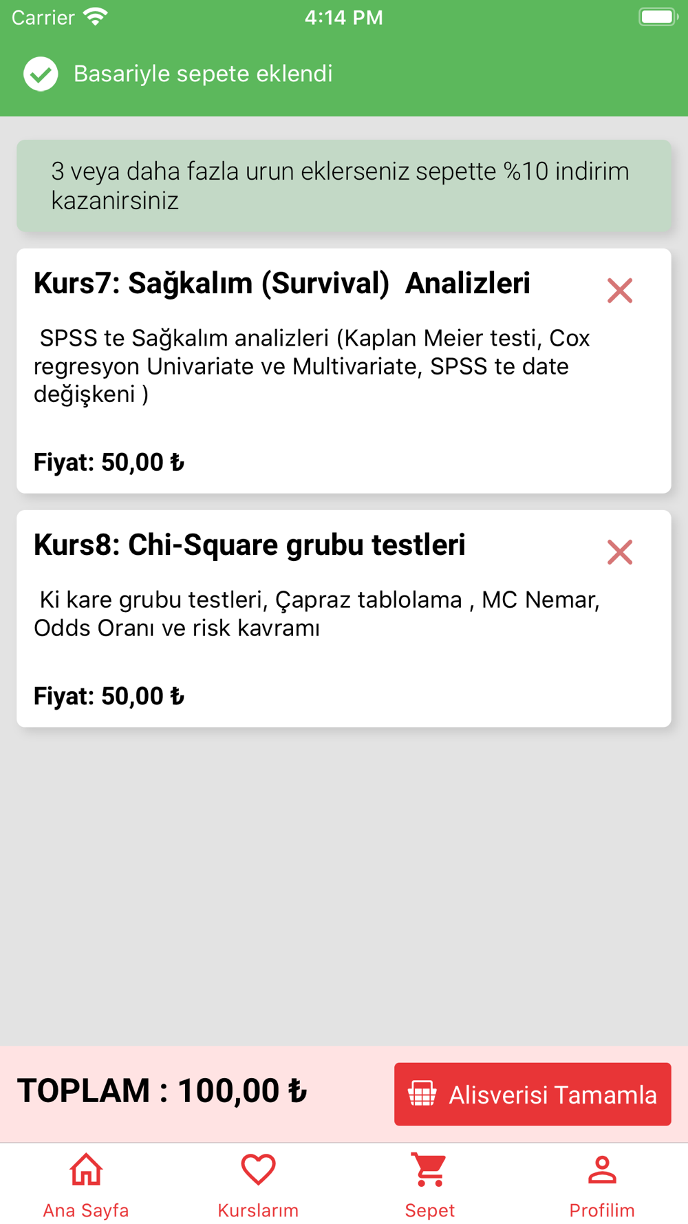 beğendiğiniz içerikleri sepetinize ekleyebilir dilerseniz satın alıp eğitimin devamına erişim