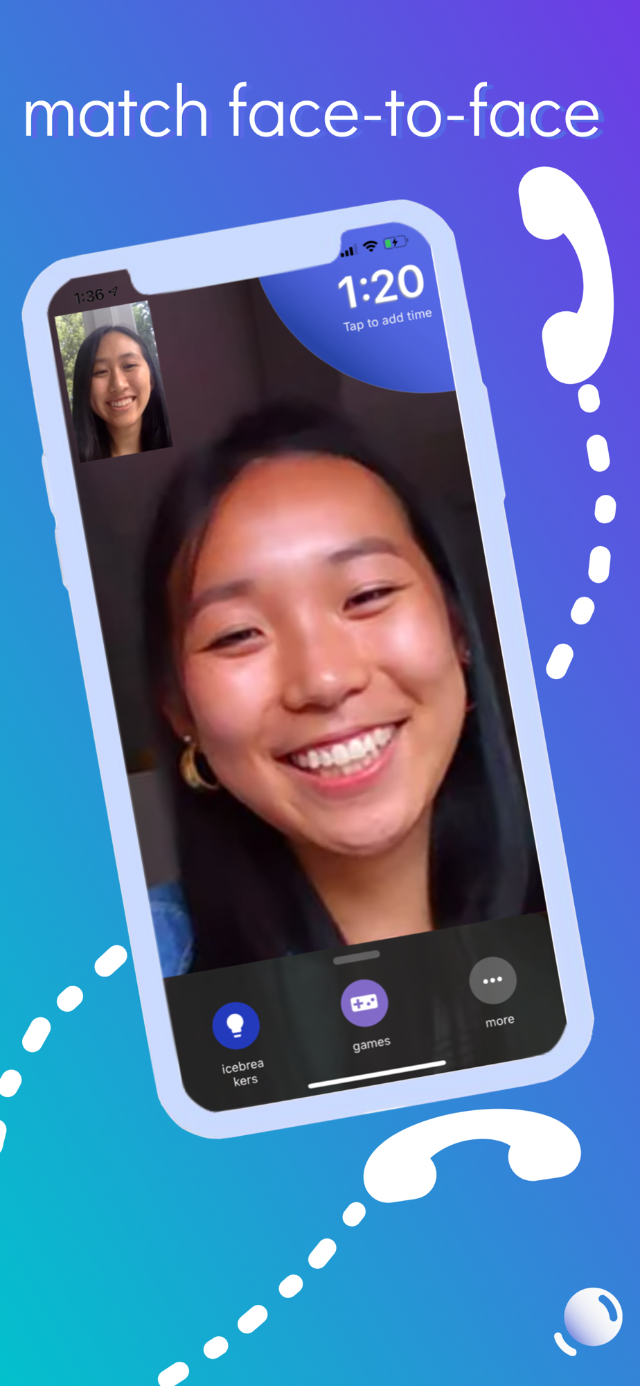 Invite people to a room, wait for your match, chat, play games, or answer icebreaker questions until time runs out. Glimpse’s 1-on-1, customizable timed conversations are guaranteed to brighten your day.