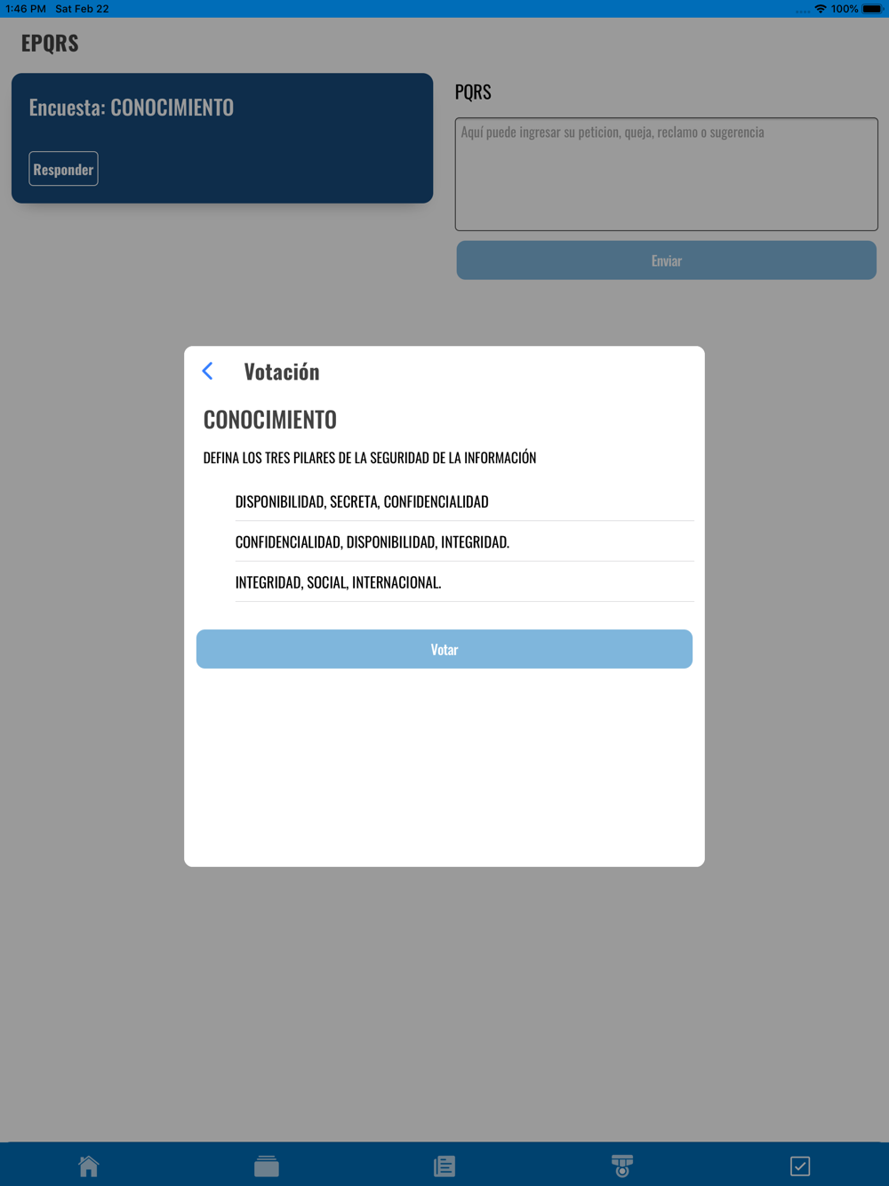 En la sección de EPQRS podrás responder a encuestas y preguntas de satisfacción, o bien podrás enviar tus comentarios acerca de la app como también generar una propuesta que ayude a mejorar el contenido que se muestra en la app.