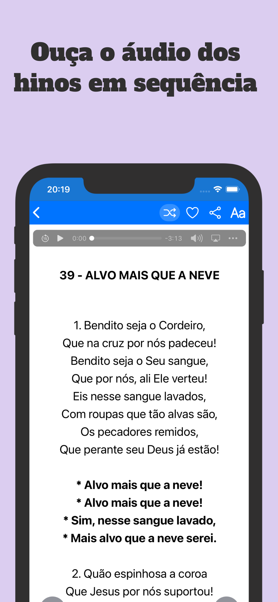 Ao todo são 480 hinos do hinário da Igreja Congregação Cristã no Brasil. O melhor aplicativo do hinário CCB 5 com áudio de todos os hinos com opção de baixar os hinos CCB 5 para ouvir offline. CCB 5 cantada Funcionalidades Principais * Com áudio * Offline (Necessário primeiramente baixar áudio) * Reprodução automática * Marcar como favorito * Redimensionar o tamanho da letra * Tela noturna * Compartilhar hino Buscar hino CCB 5 por: * Número * Título * Qualquer parte do texto do hino Escute agora mesmo os melhores hinos CCB 5 da Igreja Congregação Cristã no Brasil em mp3. Os melhores louvores usados pela Igreja Congregação Cristã no Brasil para louvar ao Senhor. Baixe agora mesmo e aproveite, totalmente grátis para você. Deus abençoe a todos vocês! Política de Privacidade: https://master-apps-it.firebaseapp.com/hinarioccb5/politicaPrivacidade.html Termos de Uso: https://master-apps-it.firebaseapp.com/hinarioccb5/termosDeUso.html
