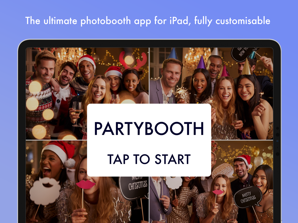 Just setup your iPad with a colourful backdrop, connect to a printer over wifi or directly and you're ready to go! Guests can follow the simple on-screen instructions and PartyBooth uses the front camera to take their picture. It's that simple.