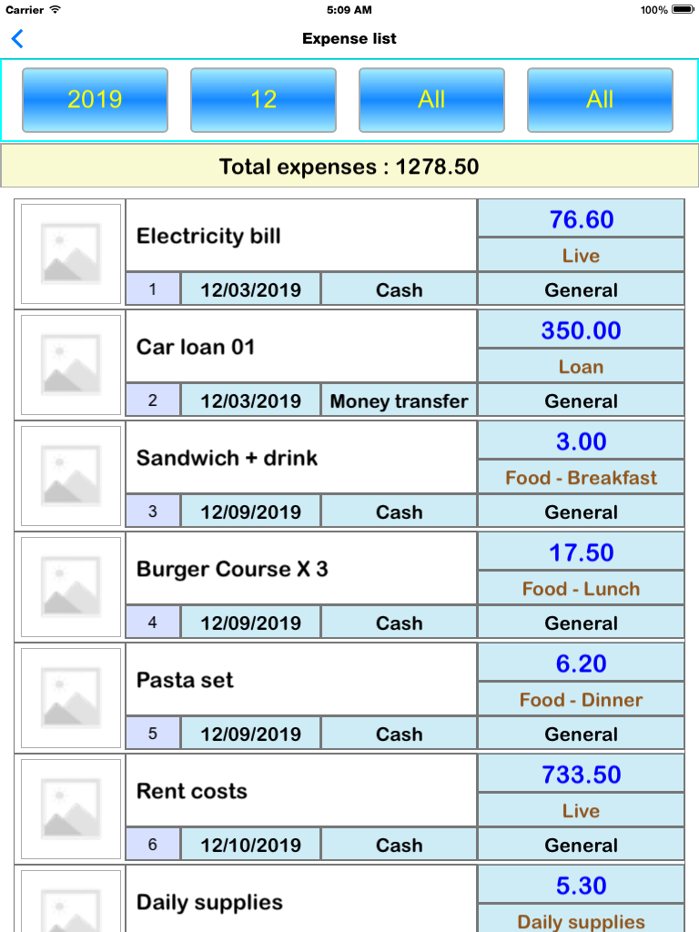 - Details of income and expenditure : The picture and comment fields can be modified, and the picture can be output.