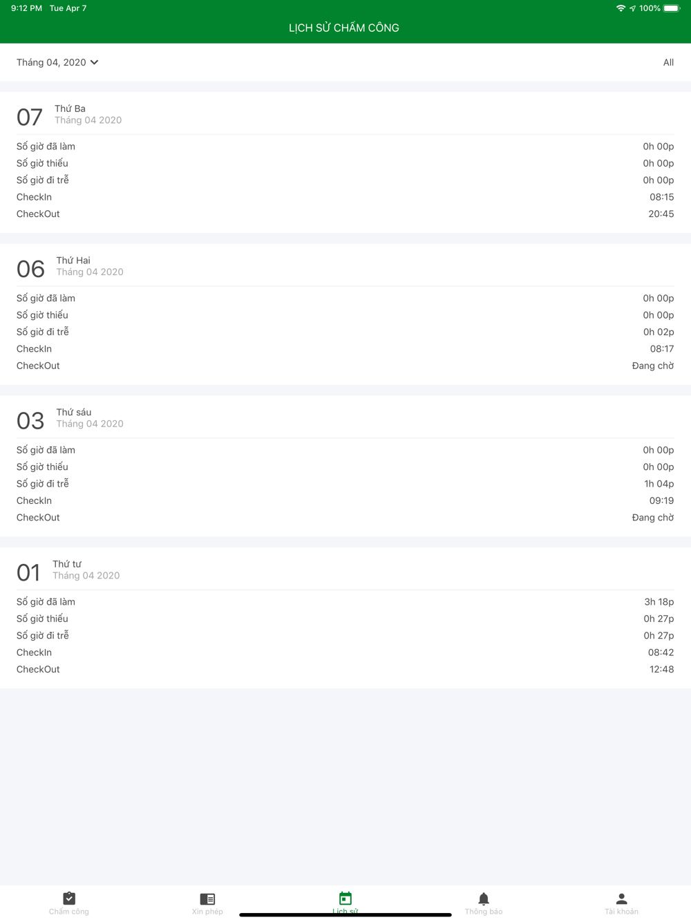 - Linh động giờ chấm công (checkin/checkout)