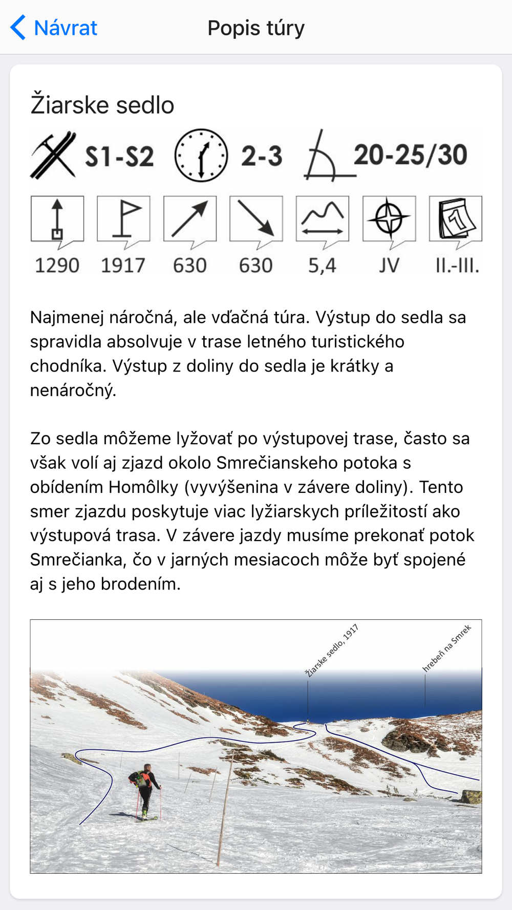 Aplikácia SKIALP TÚRY slúži ako pomôcka pri orientácii v teréne a ako výstraha pred možným uvoľnením lavíny.