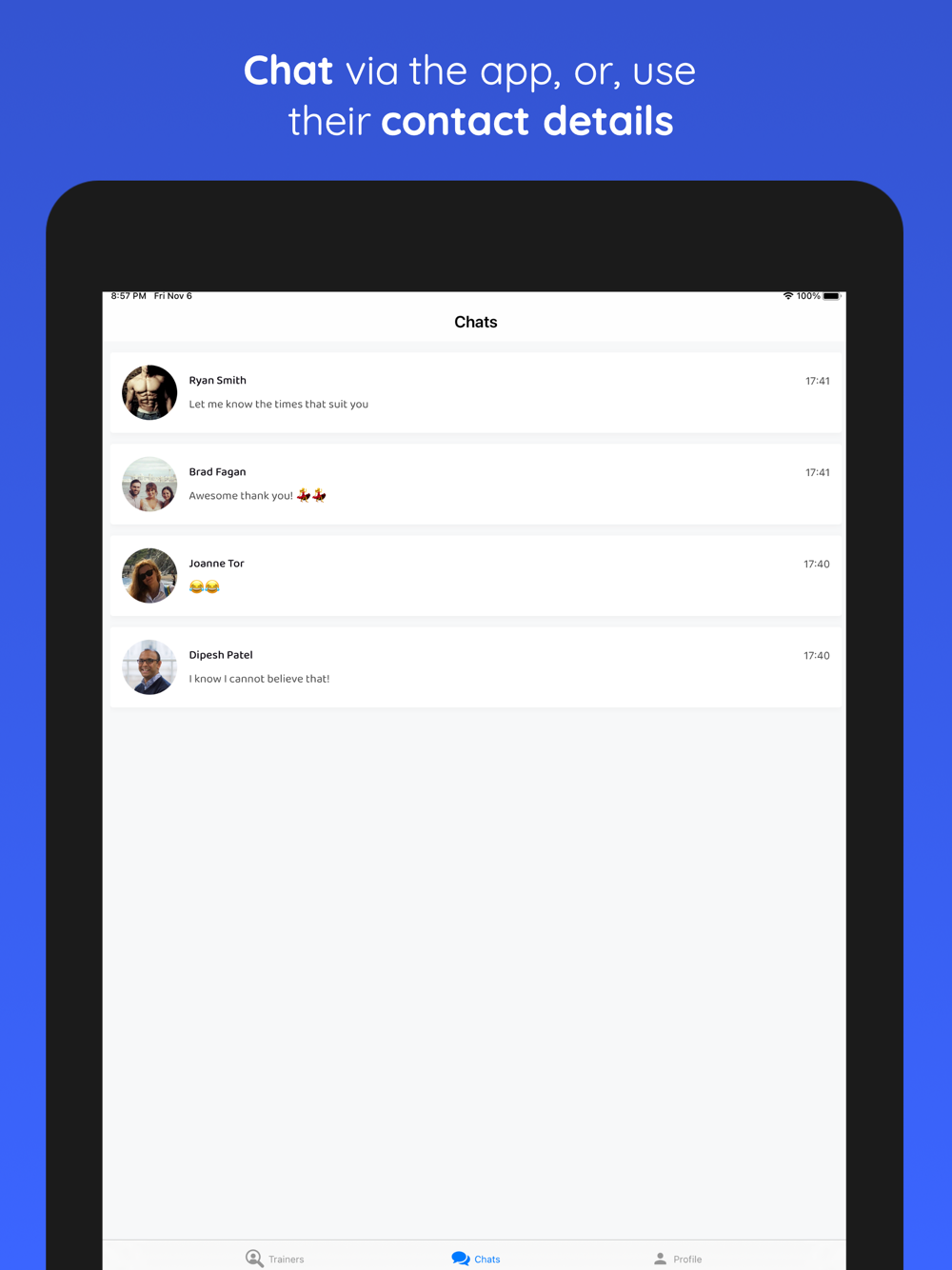 You can use PTFinders inbuilt chat to contact the trainer, or, contact them directly using their up-to-date contact details on their profile.