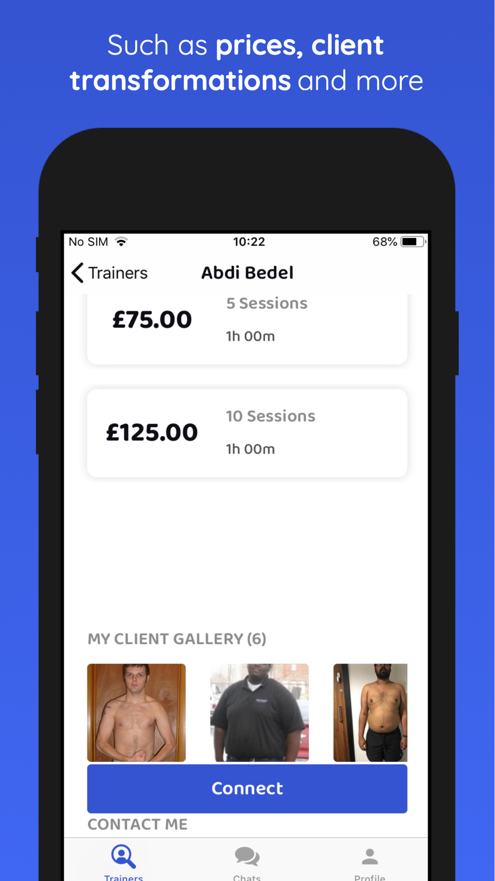 Using our filters, you can define your requirements to discover, view and connect with local personal trainers that suit your needs.