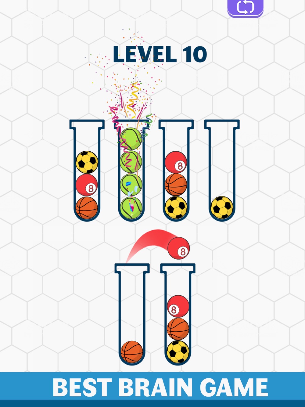 友達に電話して、家族を招待して、無限にスリリングなソルブロジックゲームを楽しもう。私たちのゲームは新しいレベルの配列を提供しています。テストチューブとボールの数は、ゲームのすべてのレベルで増加します。ゲームのスキルを応用して、同じ色を1つのテストチューブなどに配置して、ゲーム内に配置します。