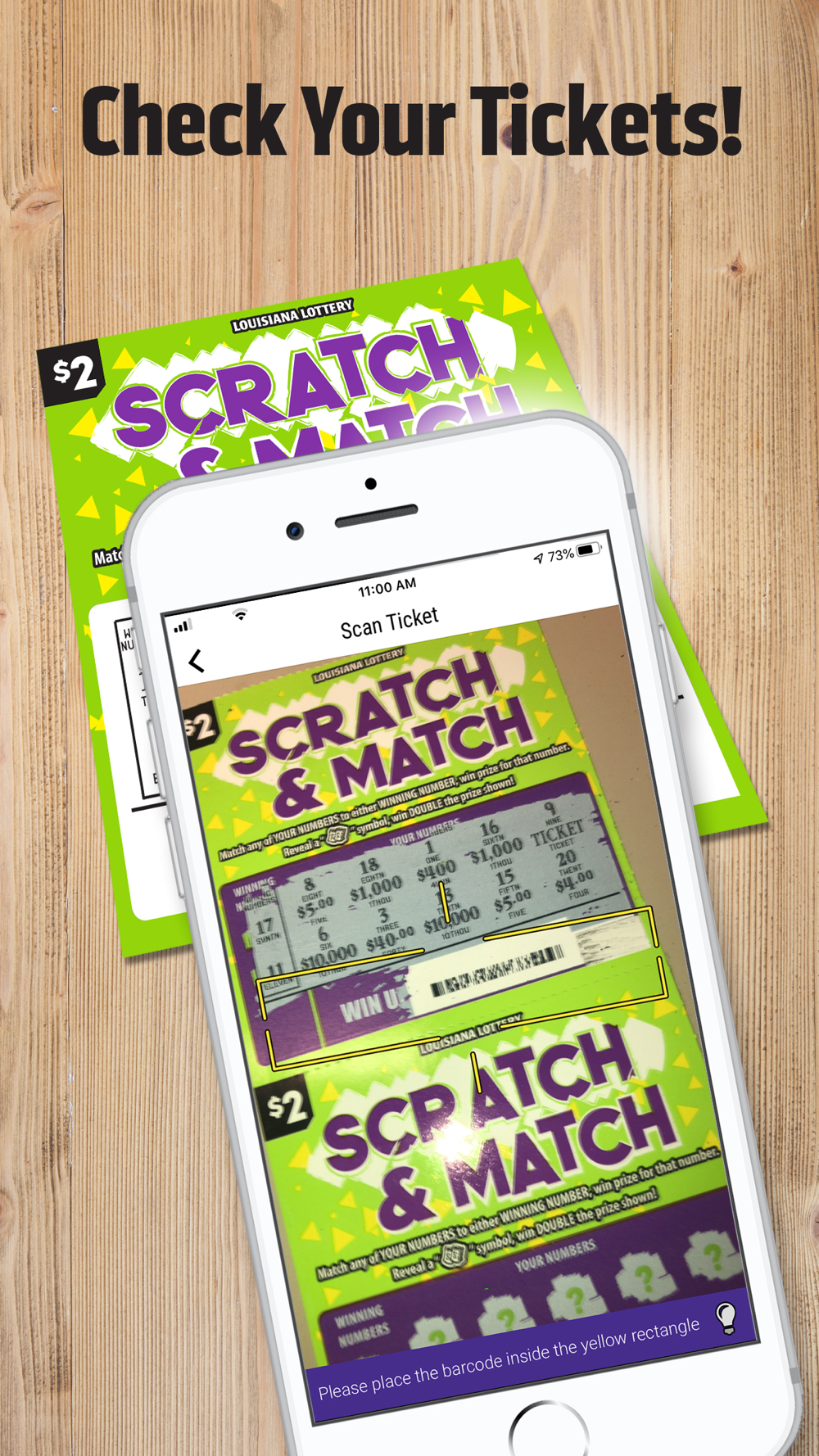 – Scan your own tickets with your device’s camera to see if they are winners and the amount of the win. (Note: Original tickets are still needed to claim a prize.)