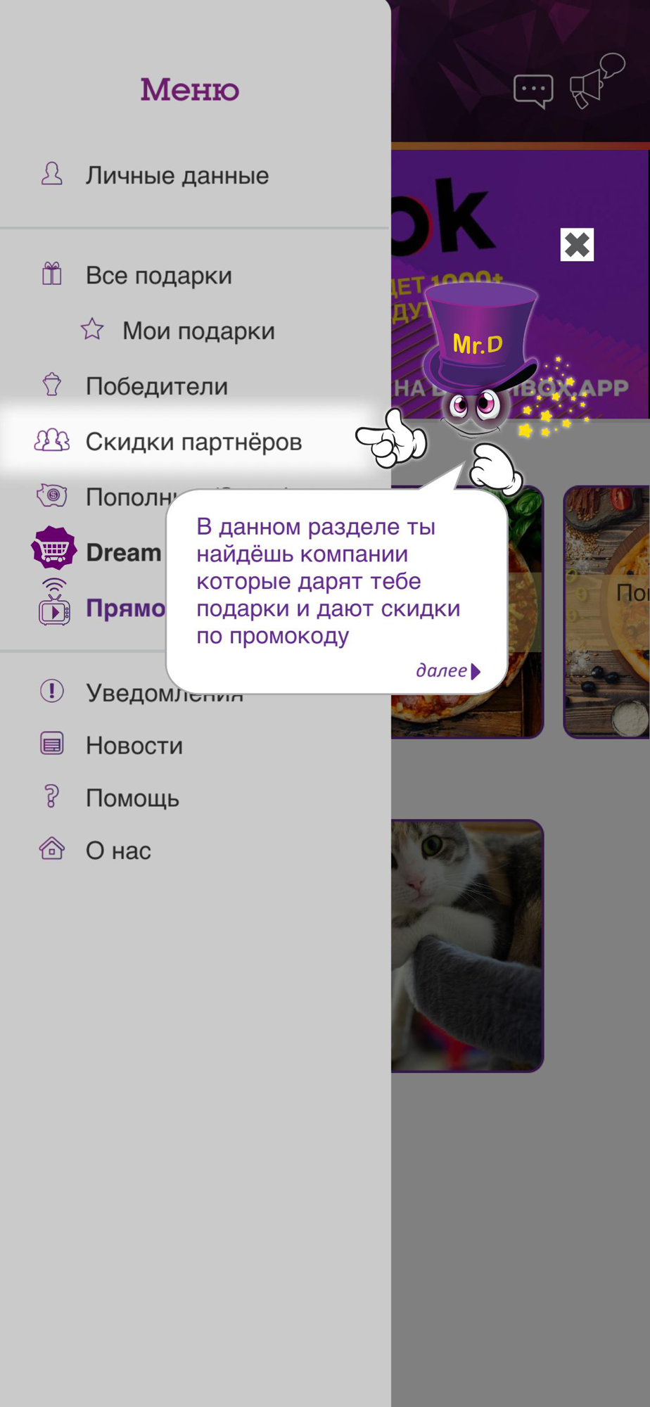 А так же мы проводим конкурсы от известных БРЕНДОВ, которые помимо подарка предоставляют скидки на свою продукцию для пользователей приложения.