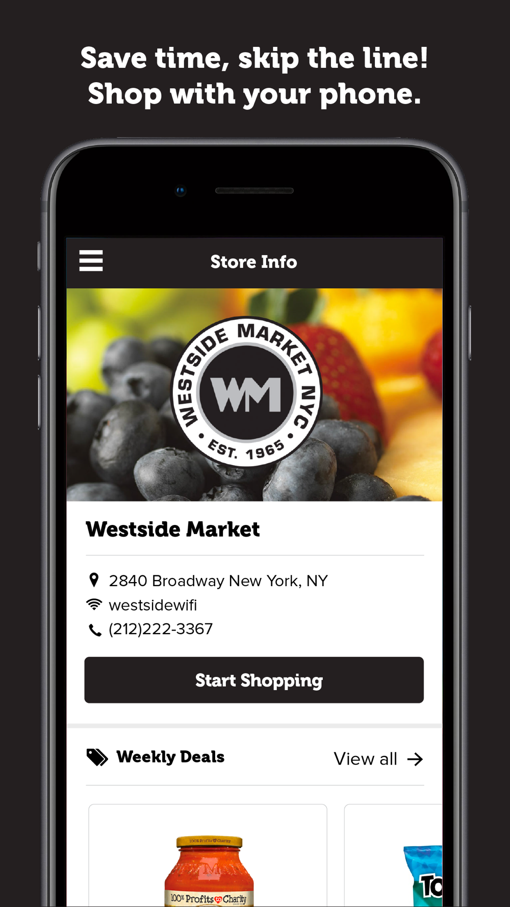 Westside Market Mobile Checkout allows you to walk into Westside Market NYC stores, scan merchandise, and pay with your card on your phone, all while avoiding long lines at cash registers.
