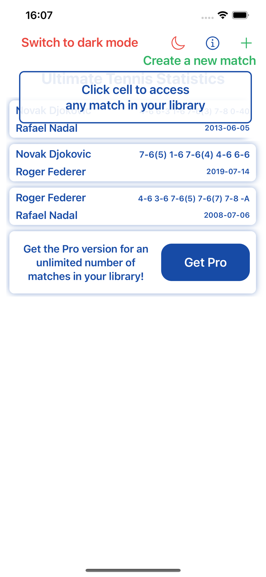 The in-app purchase allows to store an unlimited number of matches win your library and to qualify each strokes more precisely: