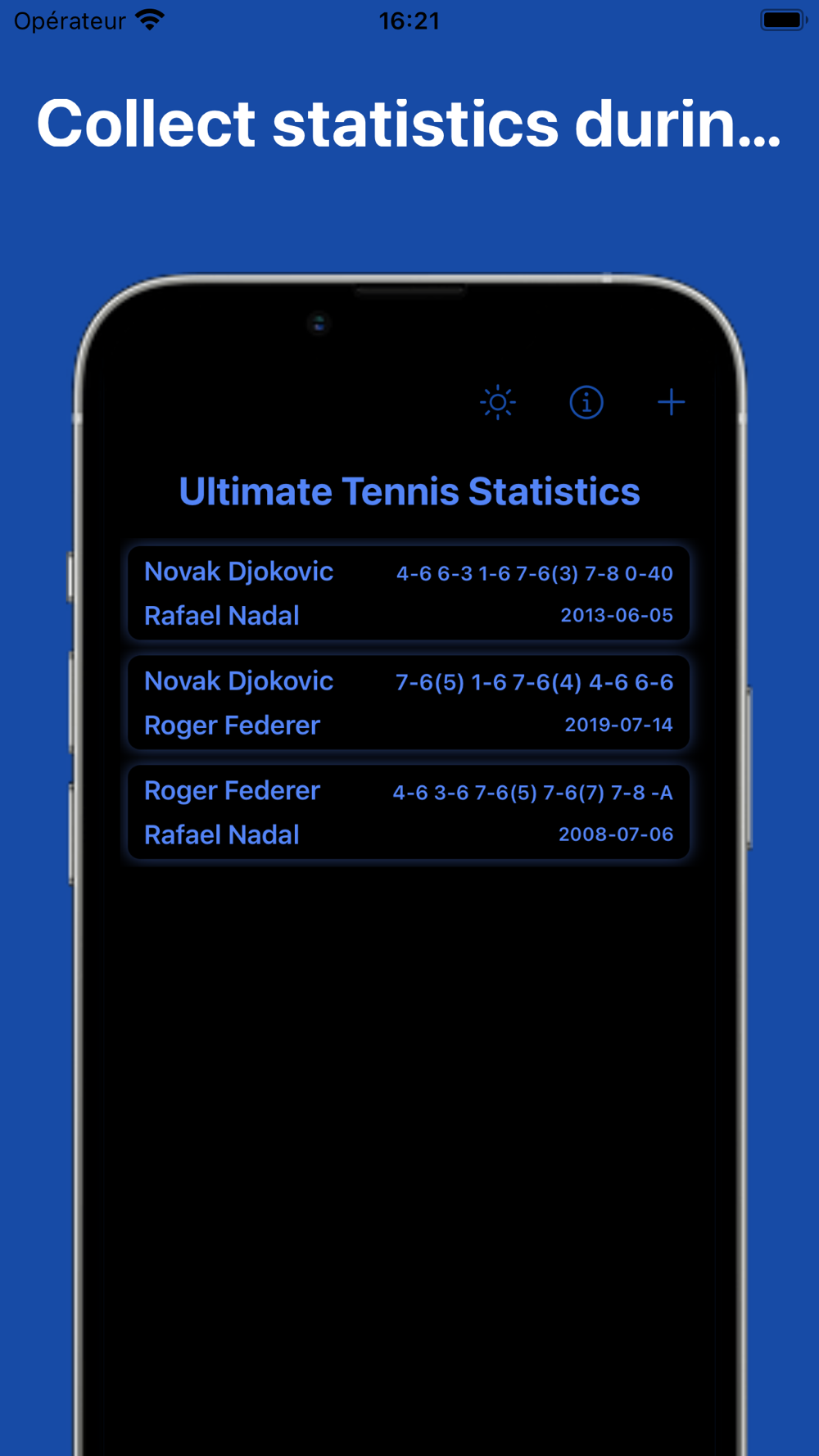 In this era of data, if you want to improve your tennis skills, you need data. This app is exactly for that. It allows to note, for each point in the match, the way each point ended and you can afterwards watch a whole batch of statistics.