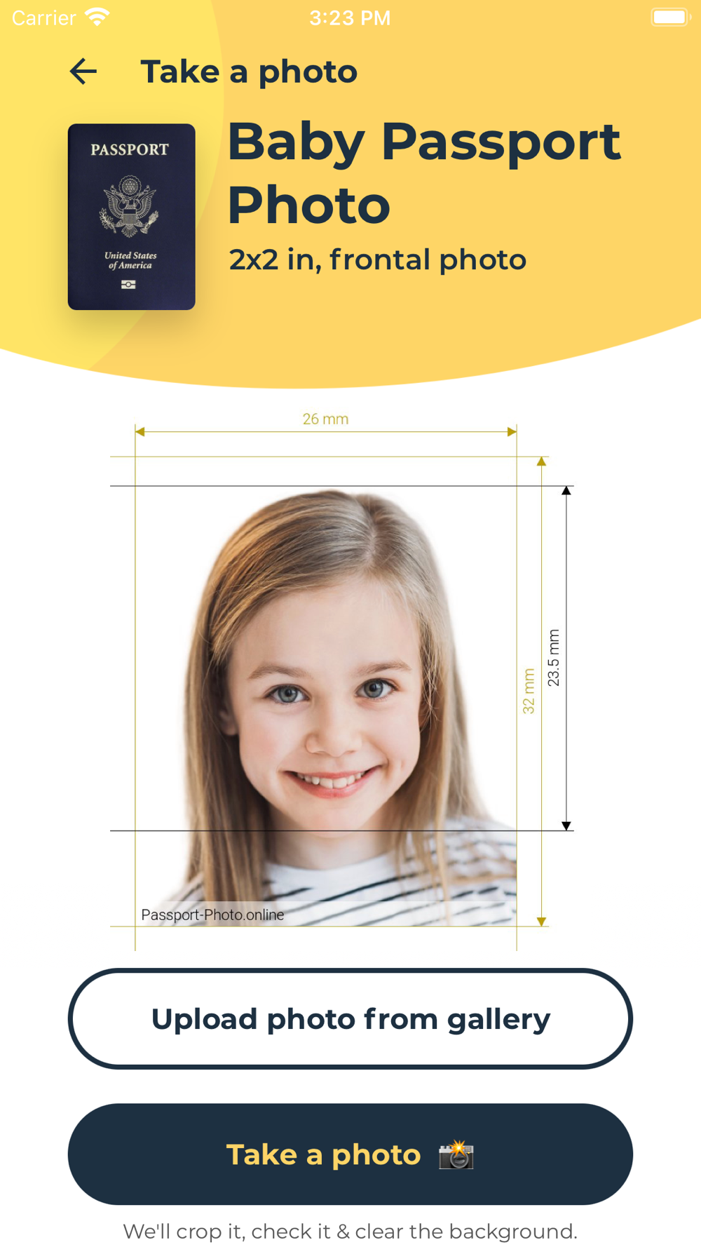 Our US passport app offers both infant passport photo as well as ones for adults.