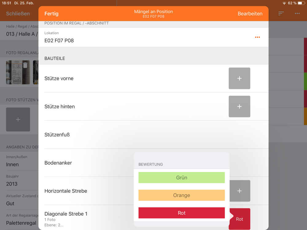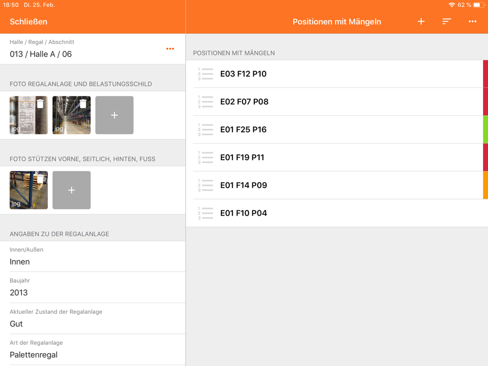 - Gefährdungen / Schäden detailliert aufnehmen inkl. Fotos zur Dokumentation.