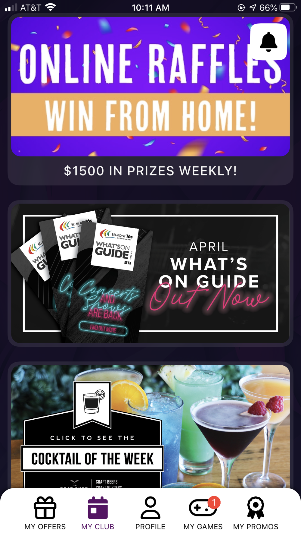 * Be part of exclusive interactive Club Promotions, sent to your phone via push notification for redemption at the venue counter