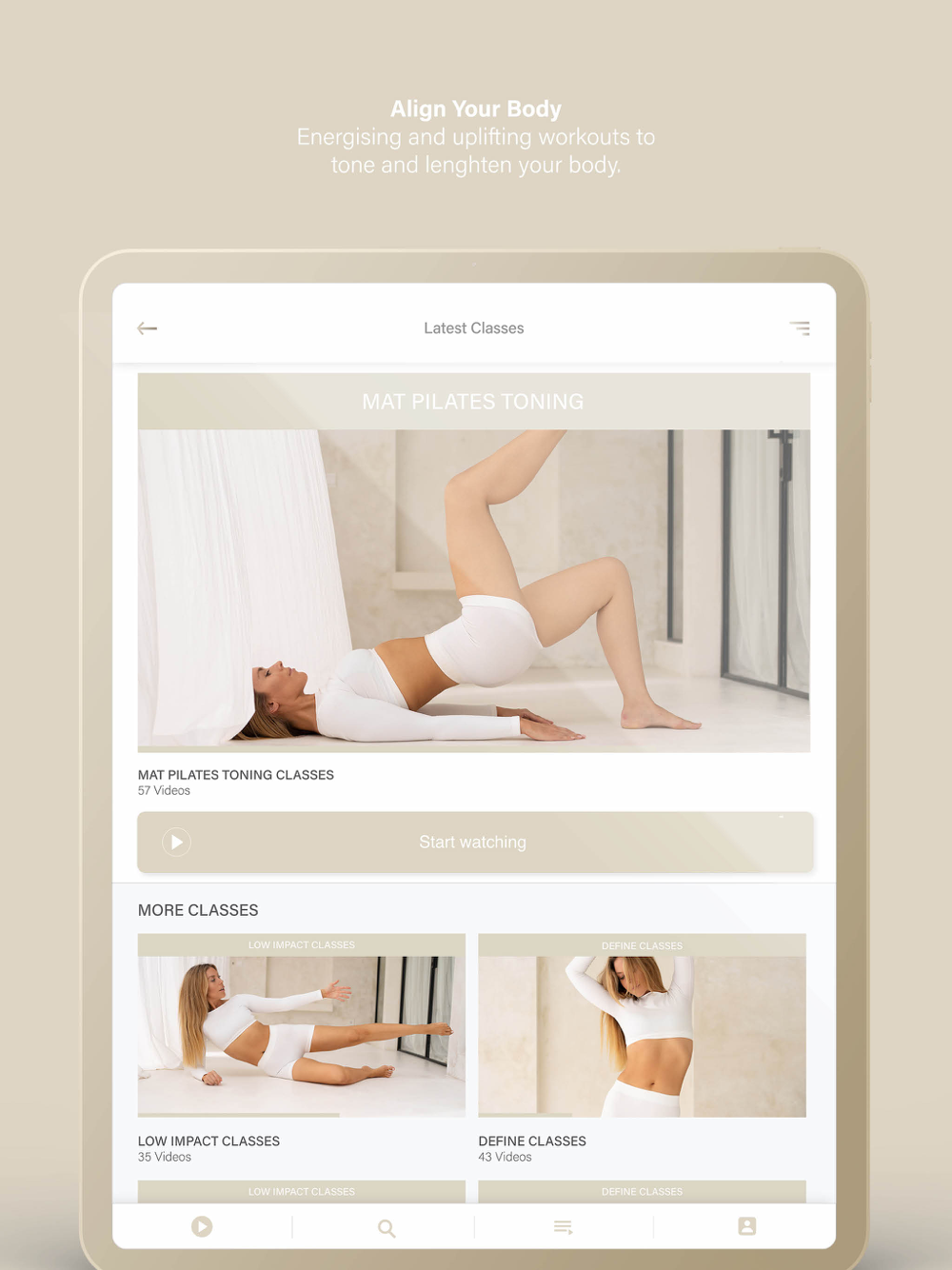 - Energising and uplifting workouts to tone and lengthen your body