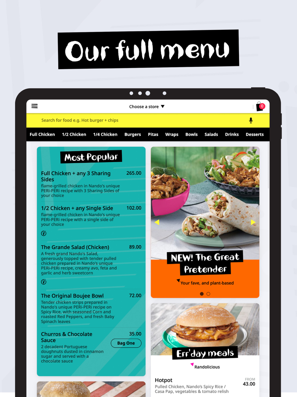We like our app the way we like our chicken: Fired up and all things PERi-PERi. Order your favourite Nando’s meals for delivery or collection. Not sure what to get? Tap ‘Surprise Me’ and treat your tastebuds to something different.