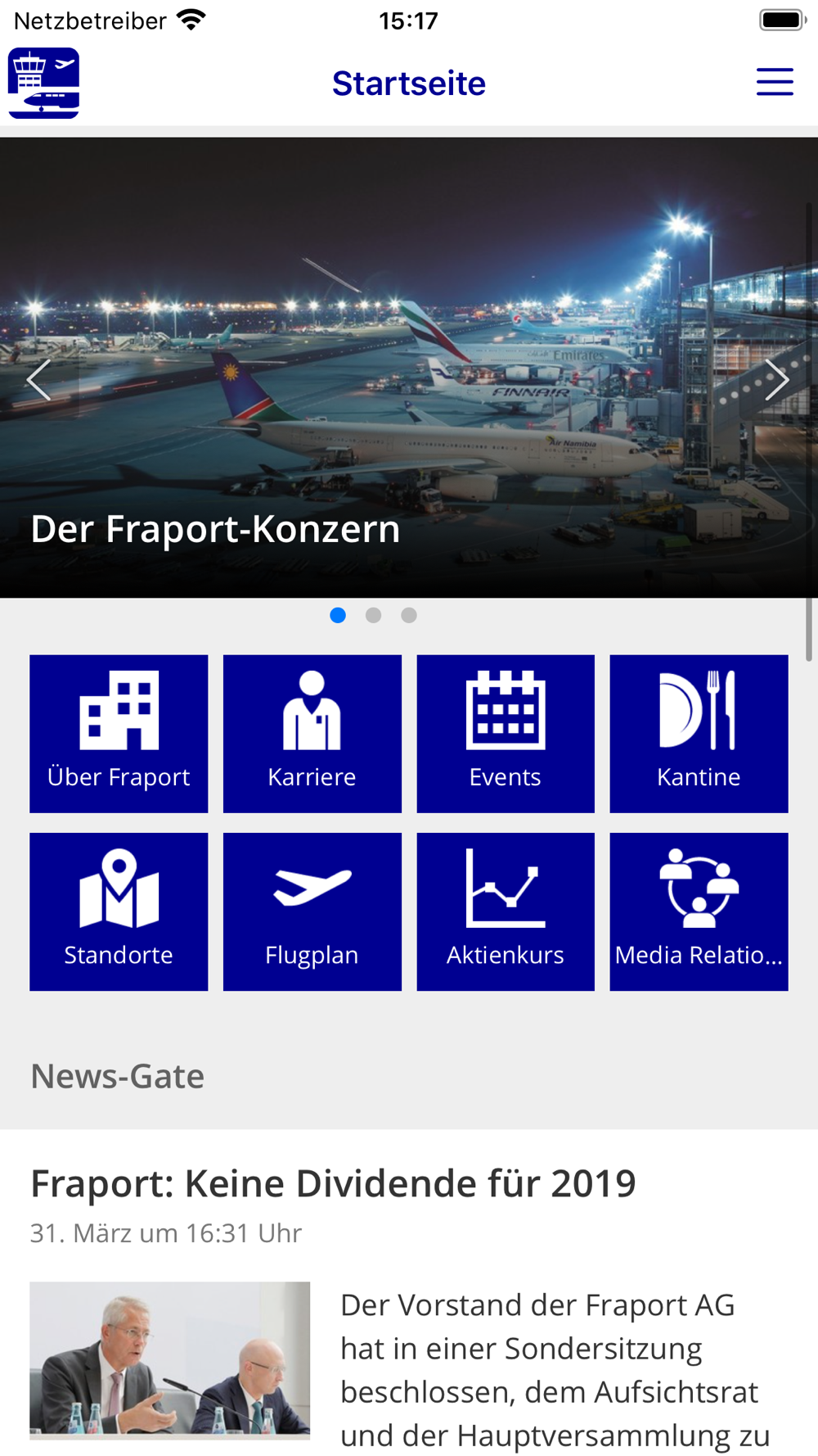 Am Airport ist jeder Tag anders und spannend. Die App bietet einen umfassenden Überblick über offene Jobs und Einstiegsmöglichkeiten bei Fraport, anstehende Messeauftritte und Events am Flughafen Frankfurt.