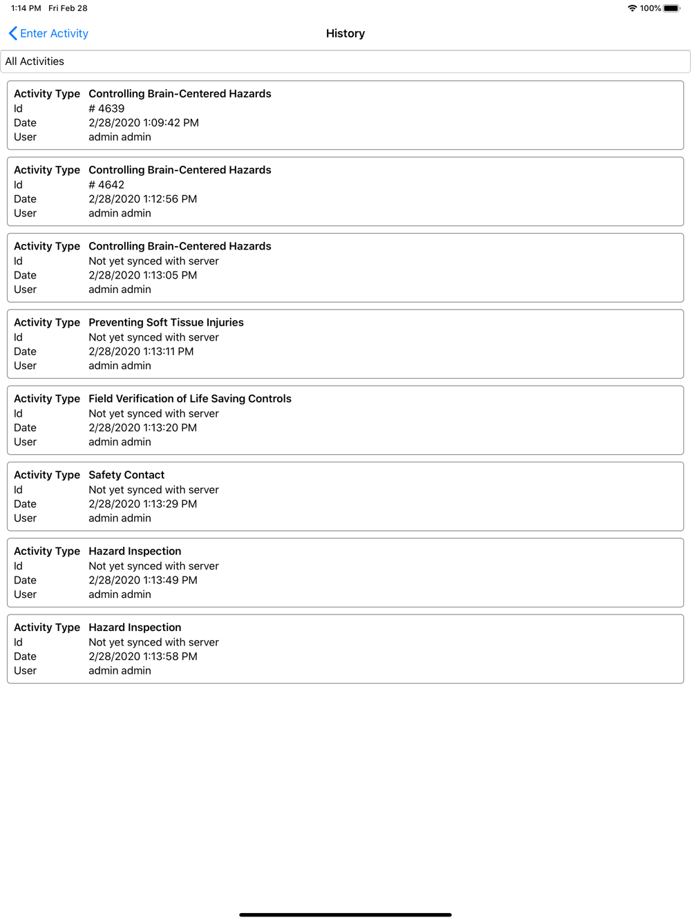 •Captures data about the frequency and quality of Safety Activities.