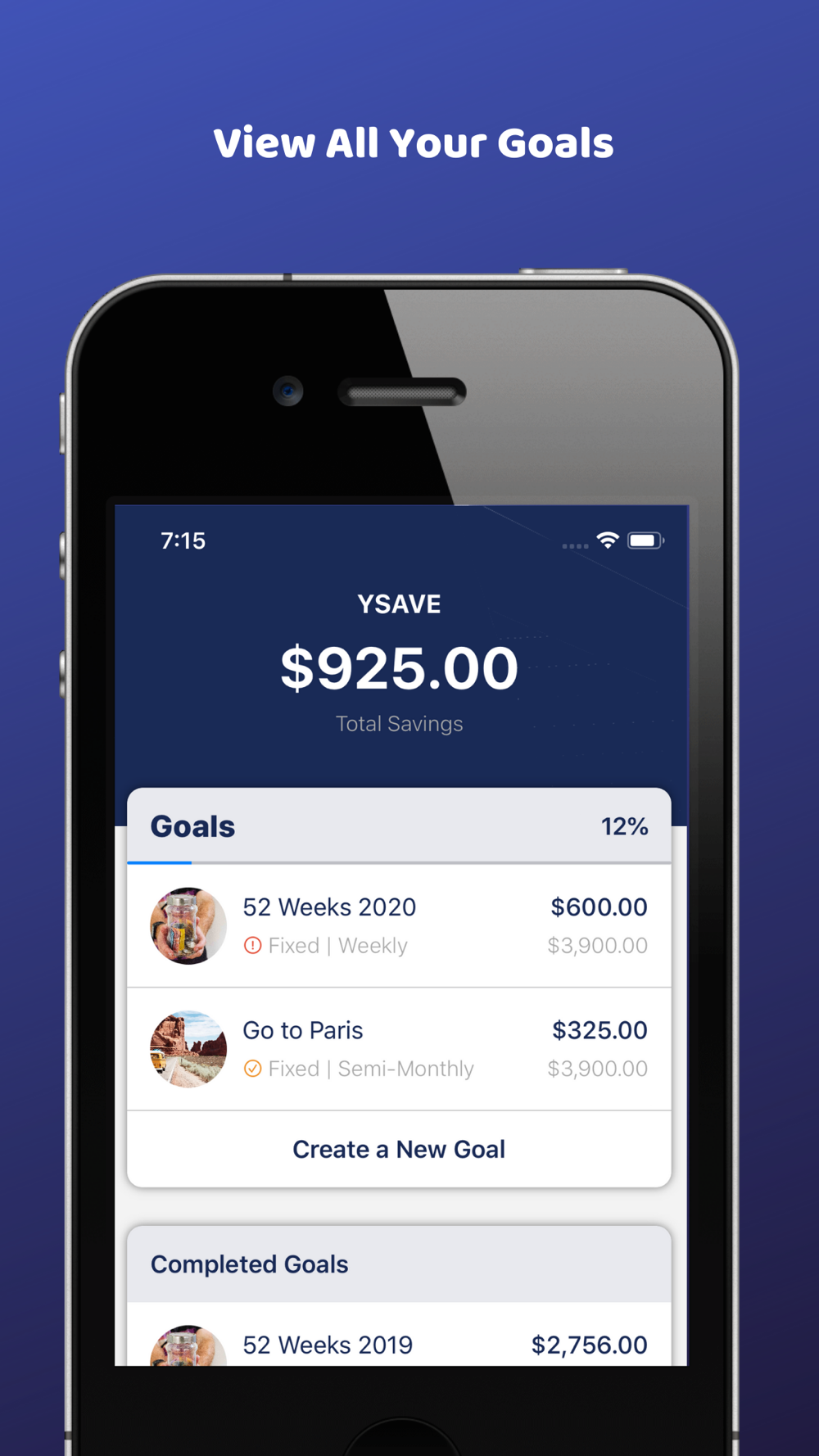 Ysave is a free app that helps you manage and track your progress towards your savings goals. It will also remind you when it is time to save. Create your goals and start saving for travel, gadgets, or anything you want on a weekly or monthly basis.