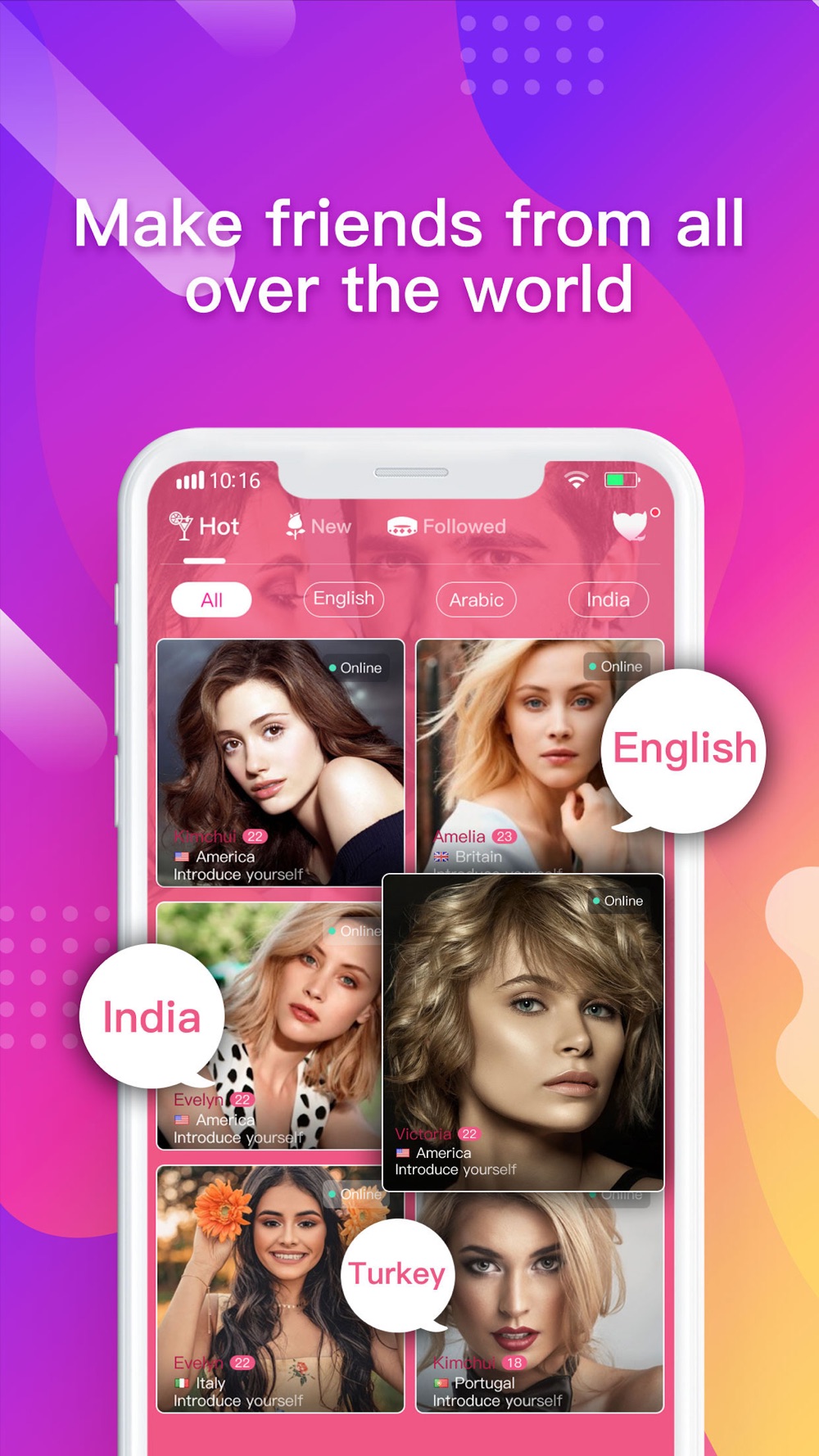 HooLive is a live chat app for strangers, you can meet friends from all over the world and talk with them anonymously. Distance, language, time, interest will never be a barrier for communication in HooLive, you can select any talented stars and have 1 on 1 video chat with them by any time and at any place.