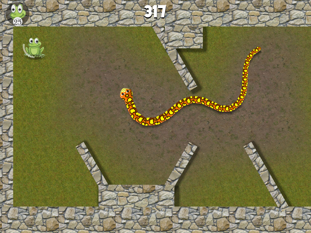 Looking for your favorite snake game? Here's a new version: the classic snake game is back with more fun and improvements. In the game a hungry snake is roaming around to eat some frog and mice and grow in length. More food it eats, more it grows. Movement of the snake is controlled by finger dragging around the screen. The rules are the same, yet more interesting and fun.