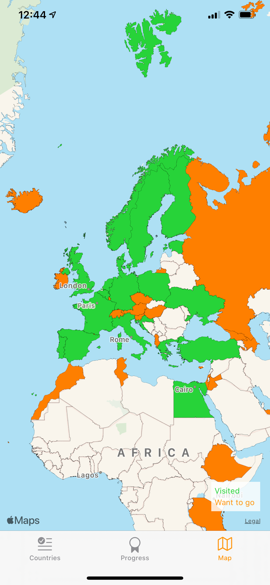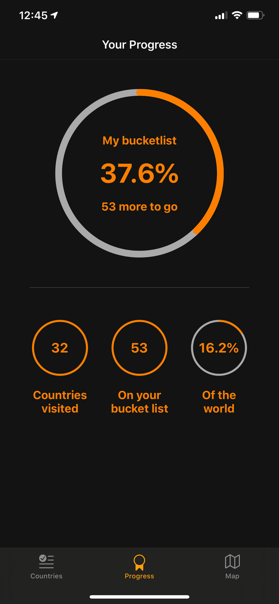 - See how many percent of the worlds countries you have visited