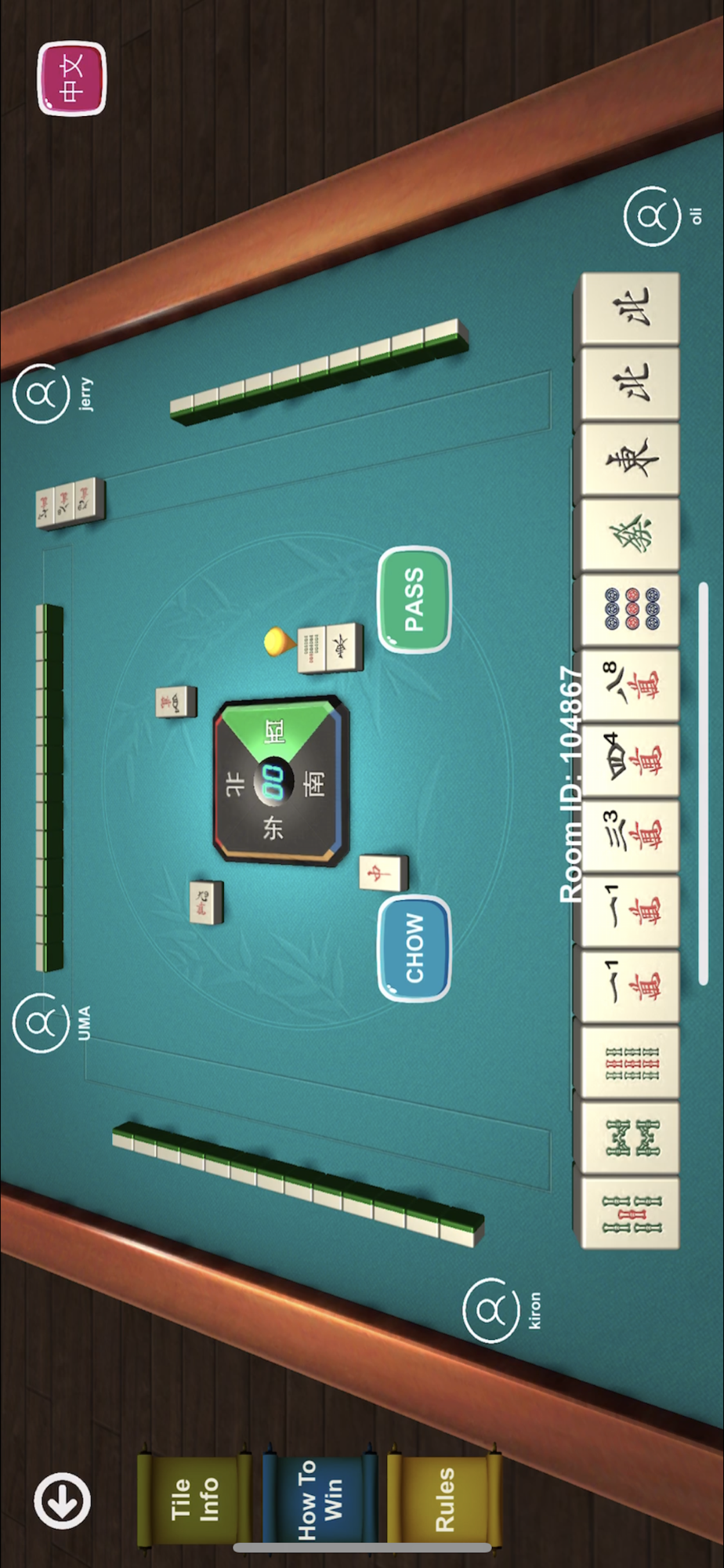 - various game actions such as “Discard”, “Pong”, “Kong” and “Chow”