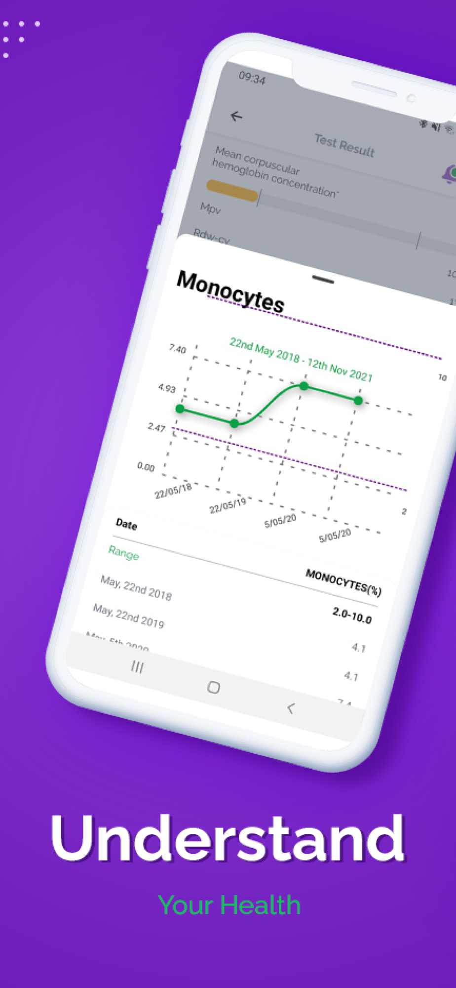 Through a ‘traffic light’ system on test results patients and doctors can easily spot if they have a result that requires taking an action. In range results are shown in green, out of range results are shown in orange and critically out of range results are shown in red.