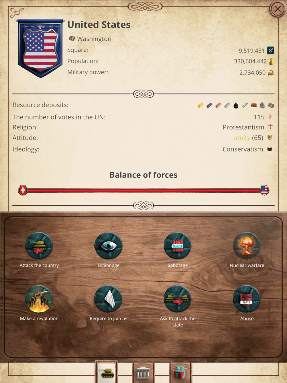And much more awaits you in the most epic game in the genre of military strategies for mobile devices! Are you ready to become a president? Which path do you choose? Will you become a dictator or a mild president? Your choice and your strategy will be the key to the success and prosperity of the country and the whole civilization.