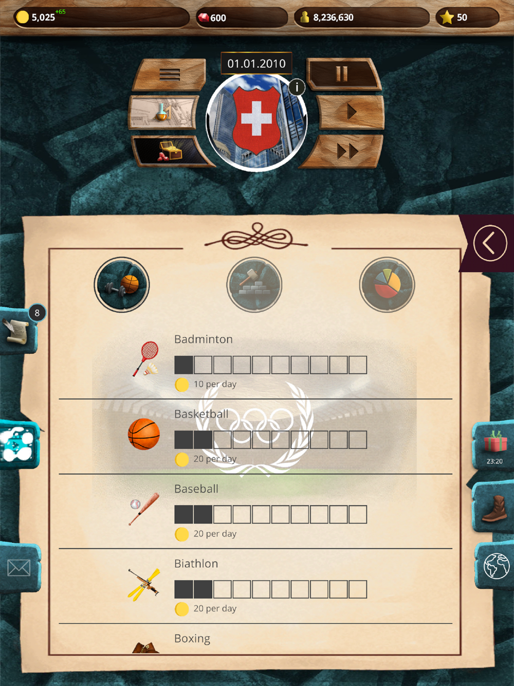 Annex states and kingdoms, send troops to capture resources. Build a fleet, prepare military units, buy or produce military equipment. Erect airfields, arsenals, barracks, and shipyards. Send spies and saboteurs.