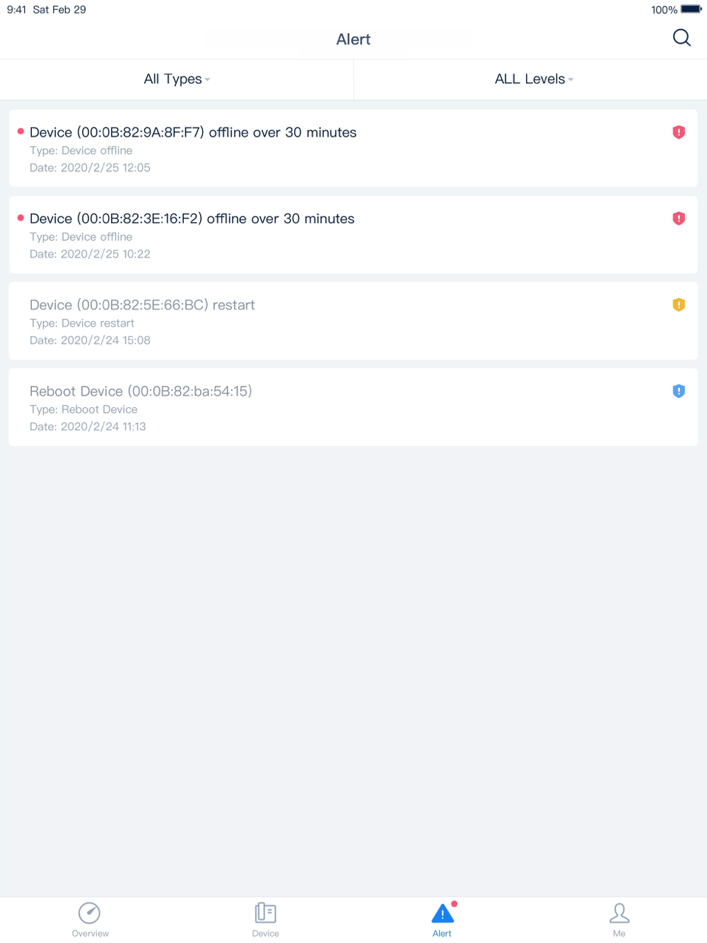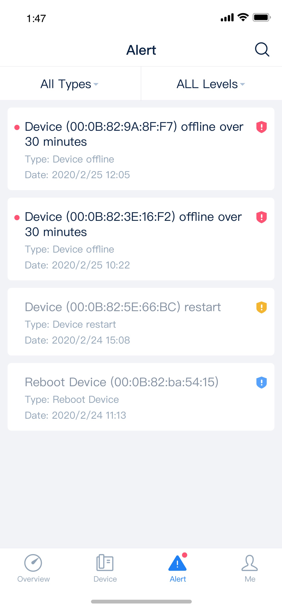 3. Monitor device in real-time: Push the device registration, abnormal status, alert messages to mobile management client.