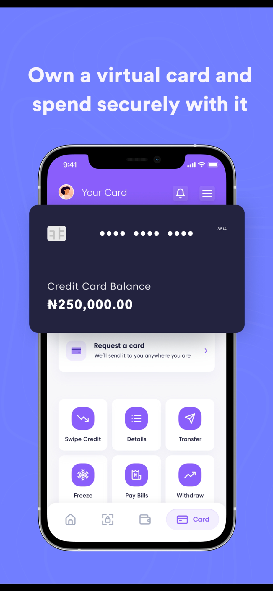 Fund your wallet and set a spending budget for the month. With your wallet, your funds are always at the palm of your hands and you can transfer to any bank of your choosing anytime.